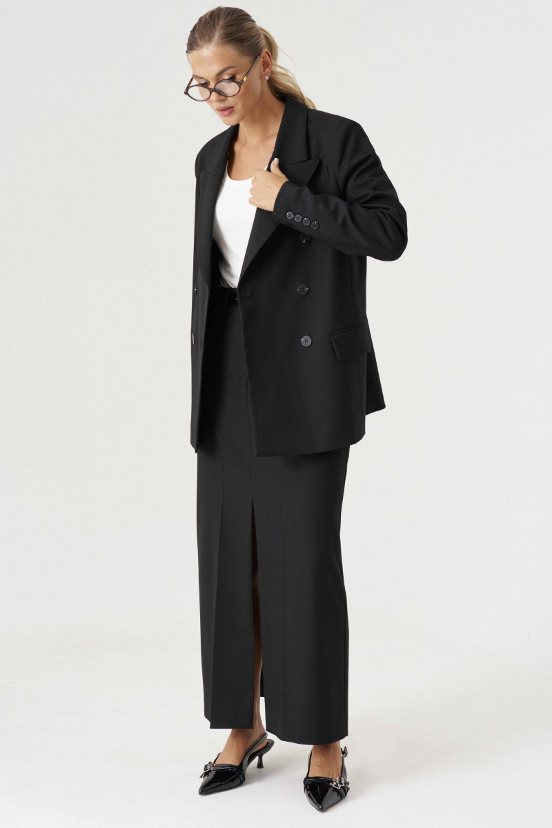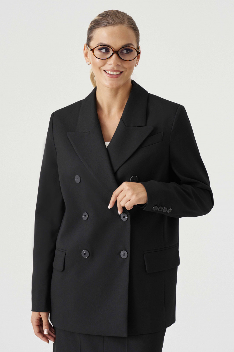 Жакет женский из смесовой ткани для повседневной носки на подкладке. Жакет полуприлегающего силуэта. Жакет двубортный, застежка на две обметанные петли и две пуговицы. Перед имеет два вертикальных рельефа, идущих от проймы до низа изделия, а также на переде располагается нагрудный карман с листочкой. По переду имеется карман с клапаном и двумя обтачками. Спинка со средним швом и с двумя рельефами, идущими от проймы до линии низа изделия. Горловина обработана пиджачным воротником. Рукава двухшовные с шлицей по низу рукава, на шлице имеются четыре пуговицы. Данное изделие станет отличным дополнением к любому гардеробу. И обязательно осчастливит его обладательницу своим прекрасным фасоном.