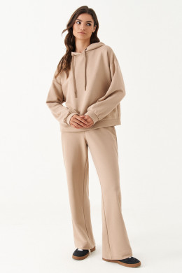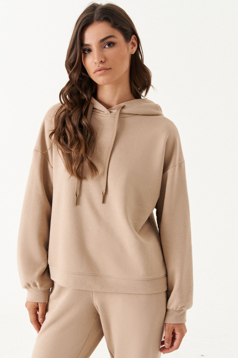 Джемпер женский прямого силуэта из смесового трикотажного полотна для повседневной носки. Горловина обработана притачным капюшоном. Линия плеча спущена. Низ рукава обработан притачной манжетой. Низ изделия обработан притачным поясом. Данный джемпер отлично подойдет для тех, кто ценит минимализм в вещах, а также для тех, кто сторонник модной и практичной одежды.