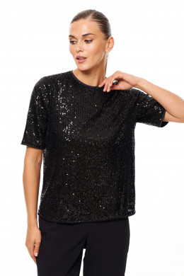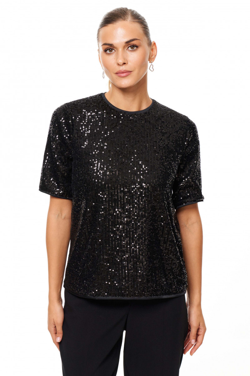 Блузка женская из ткани в пайетки с натуральной вискозной подкладкой. Блузка прямого силуэта для торжественных мероприятий. Низ изделия и горловина блузки обработаны каймой из сетки. Рукав длиной до уровня локтя, низ рукава обработан каймой из сетки. Отличный вариант для тех, то любит носить качественные изделия с натуральной и дышащей подкладкой, а особенно для тек, кто выбирает всегда выглядеть шикарно. Блузка станет замечательным выбором для вечернего образа, который будет очаровывать всех своей изысканностью.