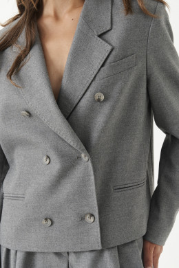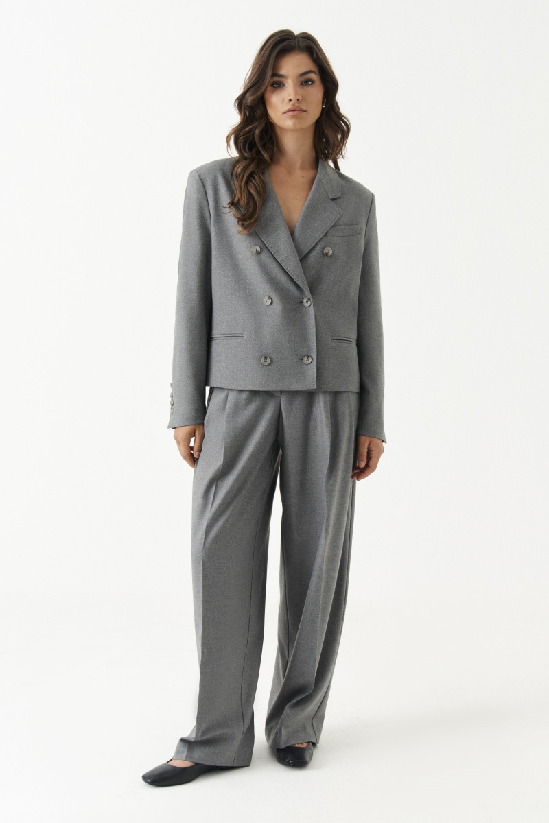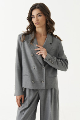 Жакет женский из смесовой ткани для повседневной носки. Жакет полуприлегающего силуэта. Жакет двубортный, застежка на две обметанные петли и две пуговицы. Перед имеет нагрудный карман с листочкой. По переду имеется прорезной карман с двумя обтачками. Спинка со средним швом. Жакет имеет отрезной бочок. Горловина обработана пиджачным воротником. Рукава двухшовные с шлицей по низу рукава, на шлице имеются четыре пуговицы. Жакет полностью на поливискозной подкладке. Данный жакет станет отличным дополнением к любому гардеробу. И обязательно осчастливит его обладательницу своим прекрасным фасоном.