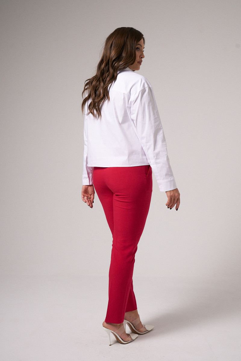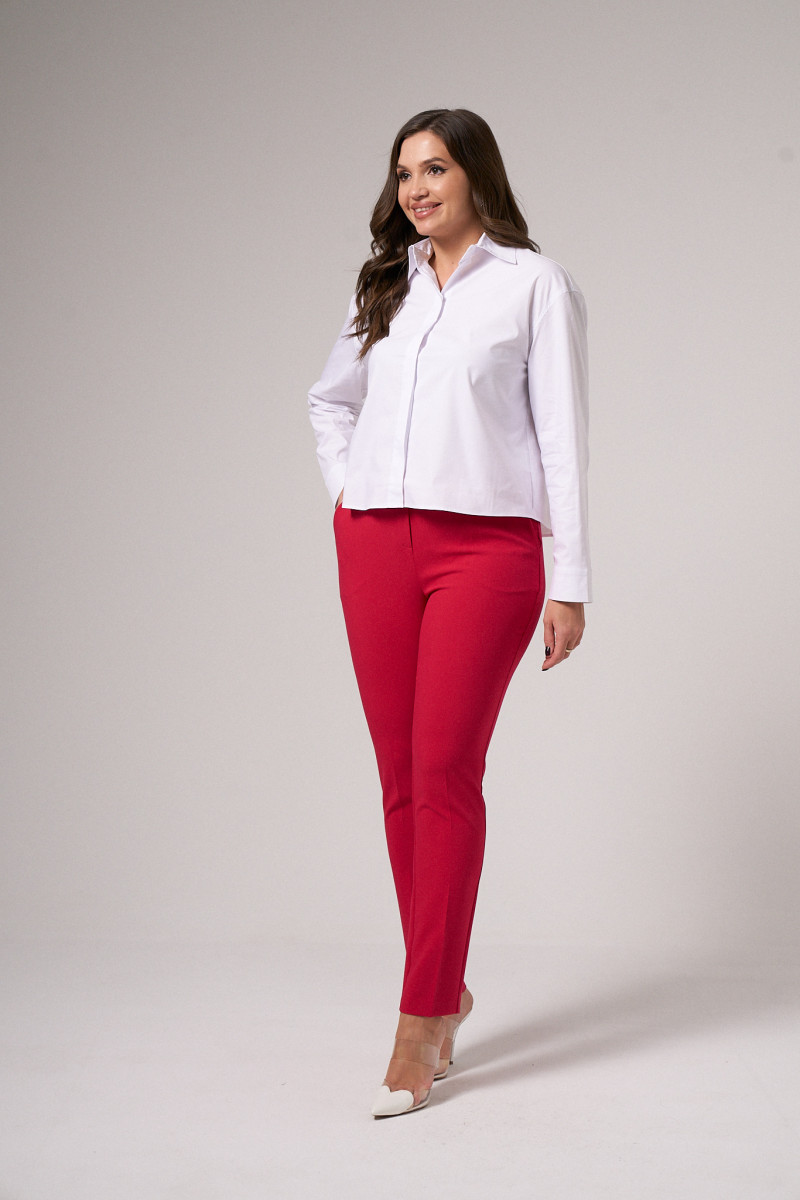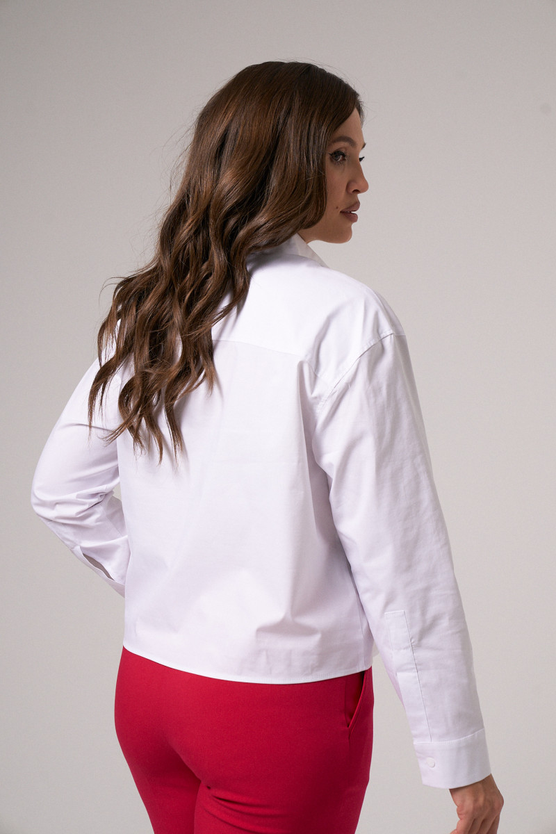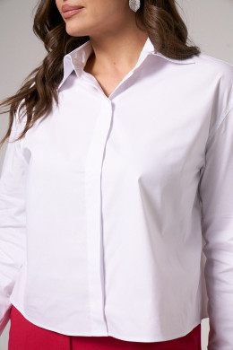 Блузка женская из смесовой ткани для повседневной носки. Блузка прямого силуэта, супатная застежка. По спинке имеется отрезная кокетка. Горловина обработана рубашечным воротником с отрезной стойкой. Низ рукава обработаны притачной манжетой, застежка на одну обметанную петлю и одну пуговицу. По низу изделия, по краю воротника, окату рукава, верхнему шву манжеты проложены отделочные строчки. Стильная и очень удобная блузка станет вашим фаворитом на любой выход.