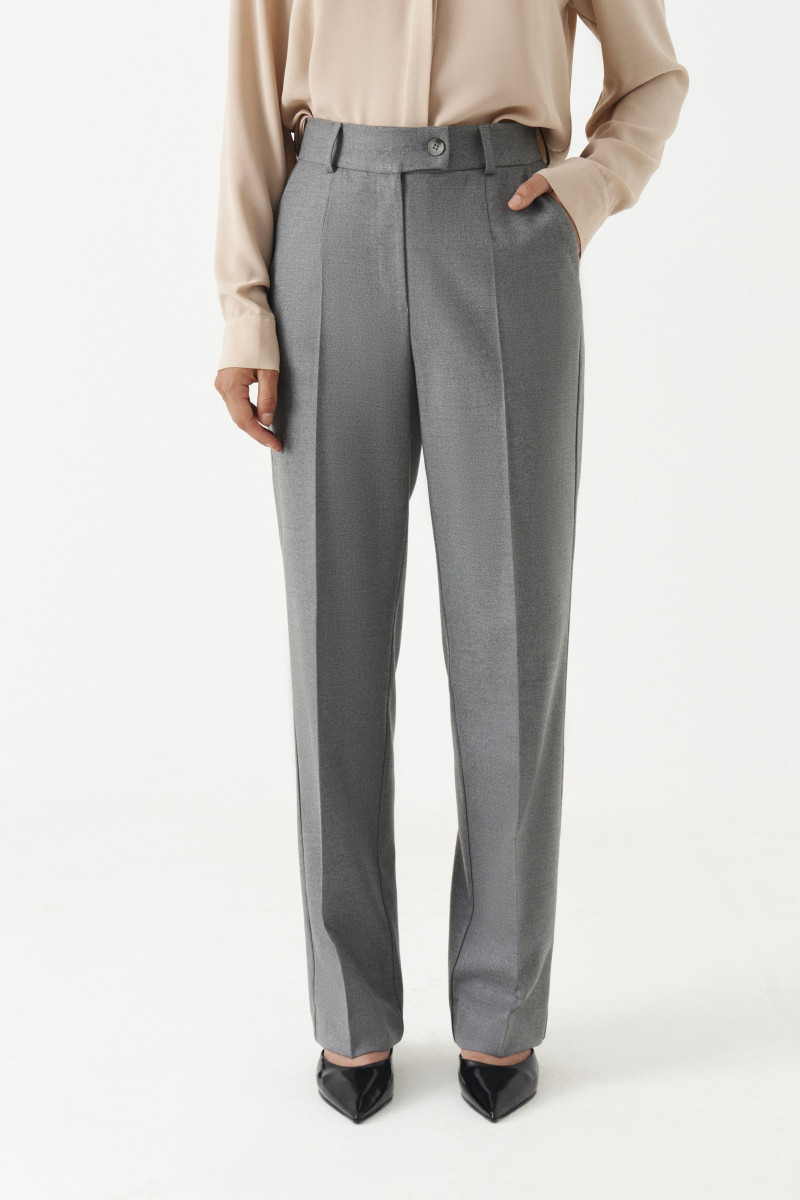 Брюки женские из поливискозной ткани для повседневной носки. Изделие прямого силуэта. Верхний срез брюк обработан притачным поясом. Брюки с прорезными карманами в боковых швах и подкройным бочком. По задним половинкам имеются талиевые вытачки и прорезные карманы с листочкой. Длина изделия классическая. Красивые и стильные брюки отлично будут смотреться на любой фигуре.