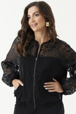 Жакет женский из смесовой ткани для повседневной носки прямого силуэта. Застежка доверху на молнию. Перед отрезной, верхняя часть из органзы. Перед имеет нагрудные вытачки, а также располагаются карманы на застежку-молнию. Низ изделия обработан притачным поясом на резинке. Горловина обработана окантовочной тесьмой. Рукава реглан, низ рукава обработан притачной манжетой на резинке. Стильный и красивый вариант жакета, а главное очень легкий и удобный. Данная модель подойдет для любого рода прогулок.