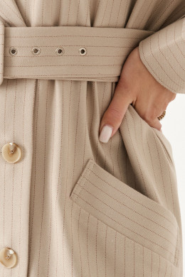 Платье женское из смесовой ткани для повседневной носки полуприлегающего силуэта. Перед имеет карман с листочкой. Платье двубортное с застежкой на три обмотанные петли и три пуговицы. Горловина обработана пиджачным воротником. Рукава двухшовные, низ рукава обработан притачной манжетой застежка на одну обметанную петлю и одну пуговицу. В качестве прилегания в области талии имеется пояс. Очаровательное платье покорит любителей классического стиля, в котором вы всегда сможете выглядеть неотразимо.