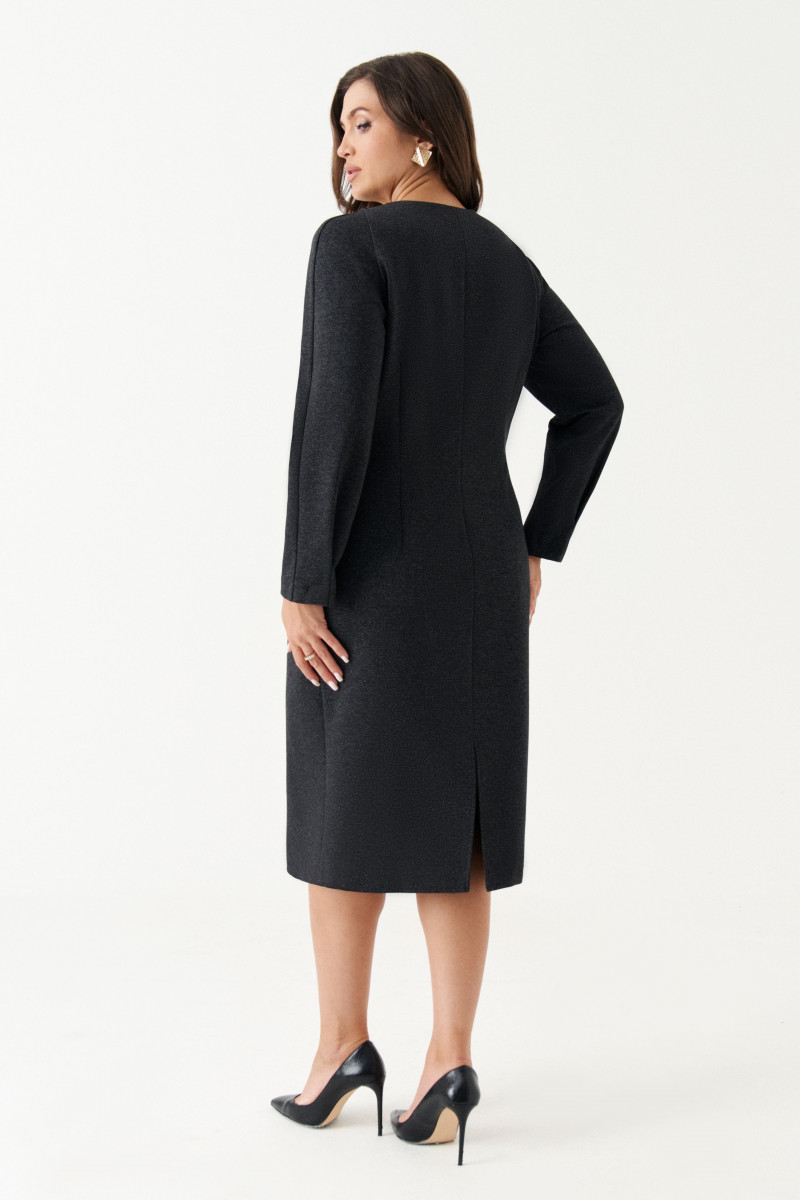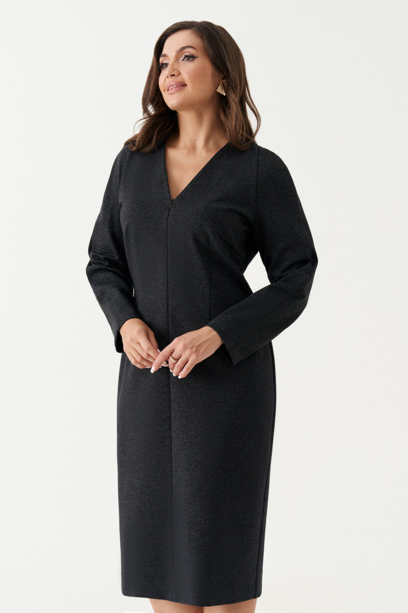 Женское платье из смесового трикотажного полотна, идеально подходящее для повседневной носки. Модель выполнена в прилегающем силуэте, подчеркивающем фигуру. Перед украшен нагрудными и талиевыми вытачками, а по центру проходит средний шов с потайной тесьмой-молнией, что обеспечивает удобство и аккуратность посадки. Спинка также имеет две талиевые вытачки и средний шов с вырезом по низу. Вырез горловины V-образный создает элегантный силуэт. Длинные рукава дополняют образ, делая платье универсальным для любого времени года. Это очень нежное и красивое платье станет вашим любимым спутником на прогулках и повседневных мероприятиях. Оно не оставит равнодушных и подчеркнет вашу индивидуальность.