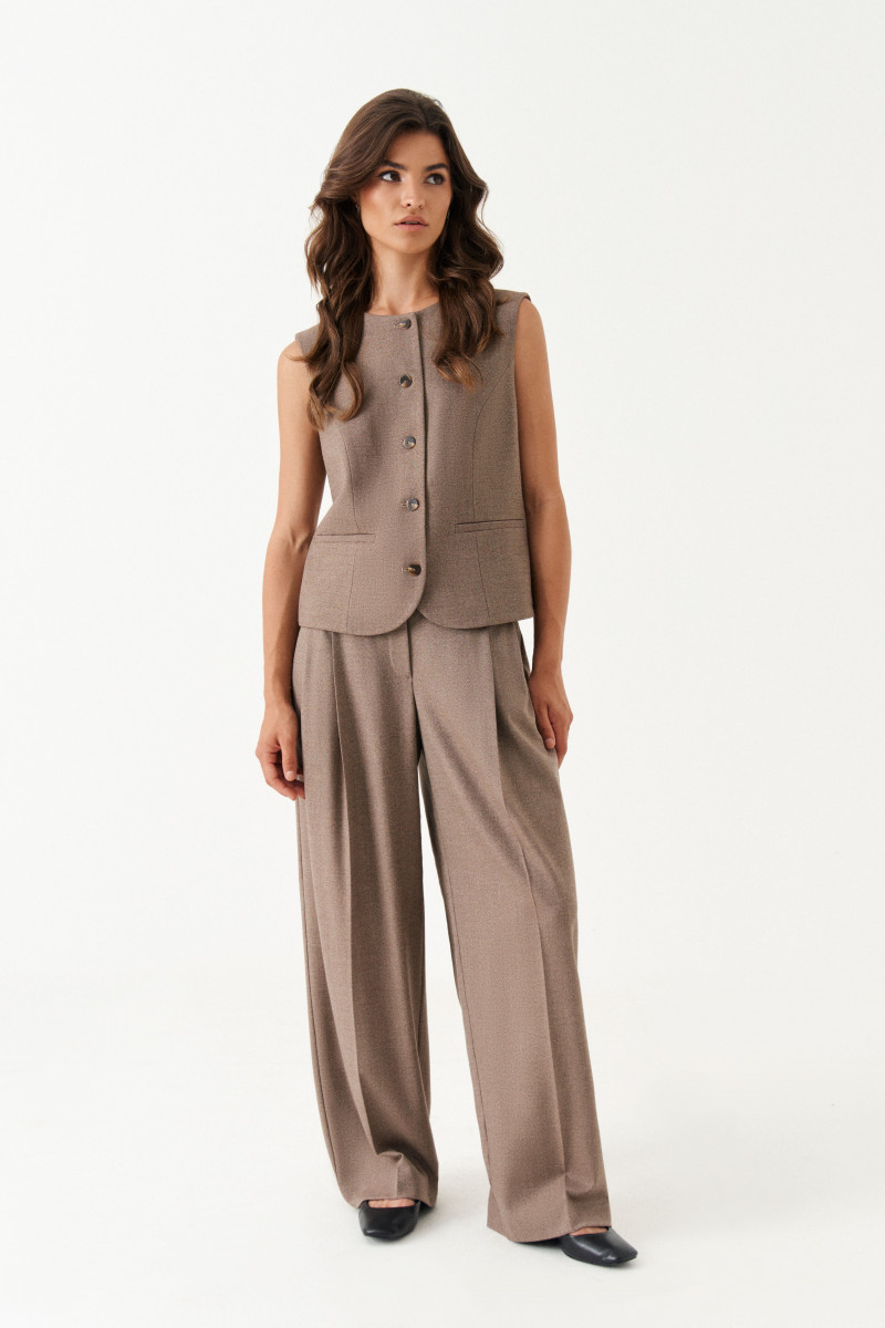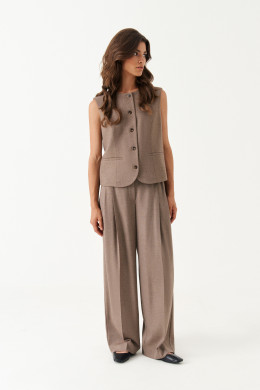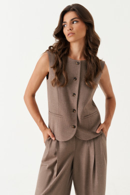 Жилет женский из поливискозной ткани для повседневной носки. Изделие полуприлегающего силуэта. Застежка центральная бортовая на обметанные петли и пуговицы. Жилет закруглен по низу борта. По переду располагаются рельефы идущие от линии проймы до низа изделия, а также прорезной карман с листочкой. Горловина круглая. Жилет полностью на поливискозной подкладке. Длина изделия классическая. Очень стильный, а главное классический вариант жилета, который будет отлично на вас смотреться.
