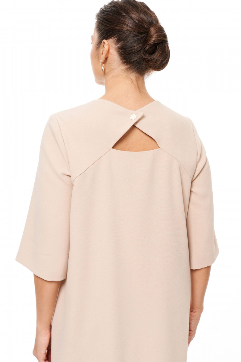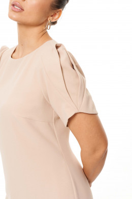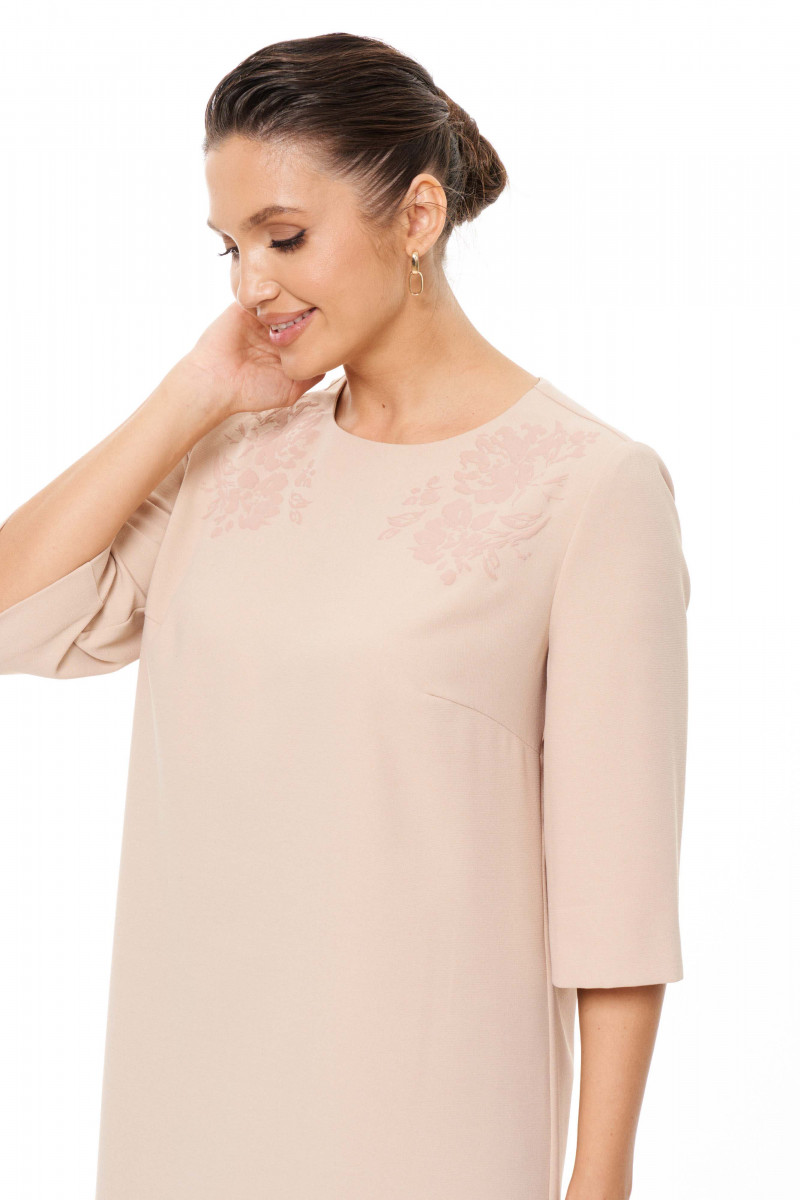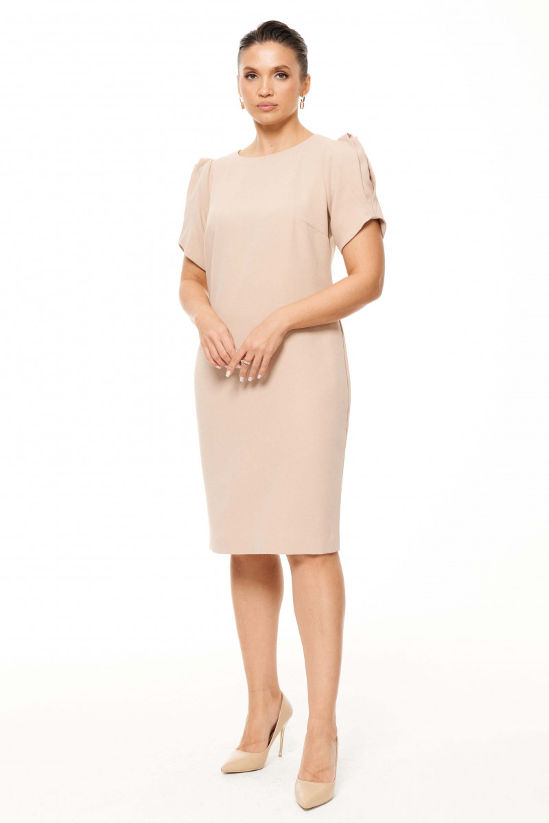 Платье женское из смесовой ткани для повседневной носки прямого силуэта. Перед имеет две нагрудные вытачки. Спинка имеет две талиевые вытачки, спинка со средним швом и застежкой-молнией в шве, а также шлицей по низу платья. Горловина обработана обтачкой. Рукава втачные, резные с отрезной частью и вставкой по рукаву из основной ткани. Платье длиной чуть ниже колена. Платье полностью на вискозной подкладке. Очень красивое платье с интересной конструкцией будет безупречно смотреться на вашей фигуре.