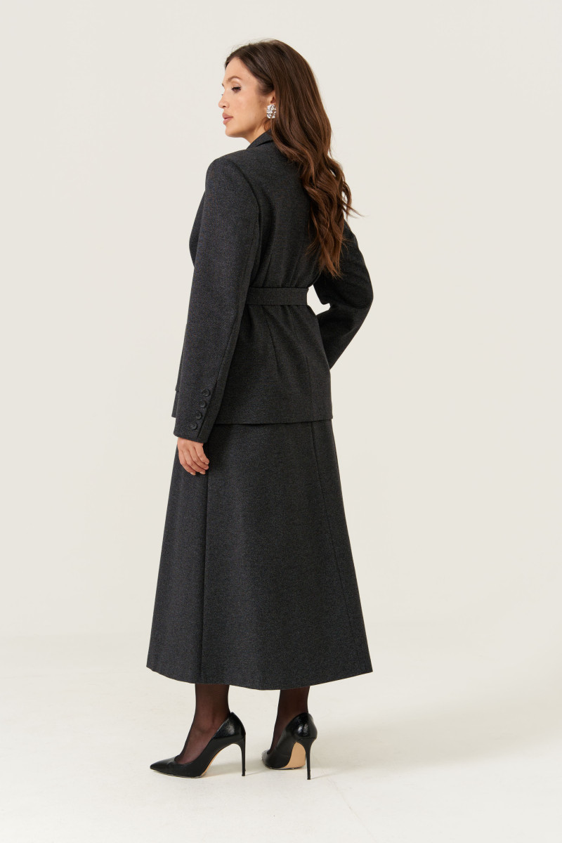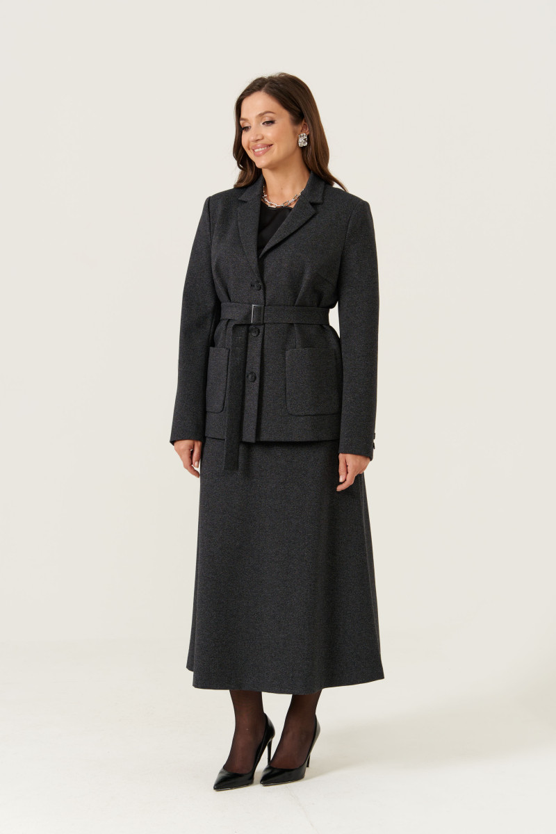 Жакет женский из поливискозного трикотажного полотна полуприлегающего силуэта для повседневной носки. Жакет с центральной бортовой застежкой на три обметанные петли и три пуговицы. Перед имеет две нагрудные и талиевые вытачки и накладной карман. Спинка со средним швом и двумя талиевыми вытачками. Горловина обработана пиджачным воротником. Рукава длинные, втачные, по низу рукава имеется декоративная шлица. В комплекте идет пояс для придания большего облегания в области талии. Жакет на поливискозной подкладке. В данном жакете вы будете выглядеть очень стильно и уверенно, а главное он удивит вас своей интересной конструкцией.