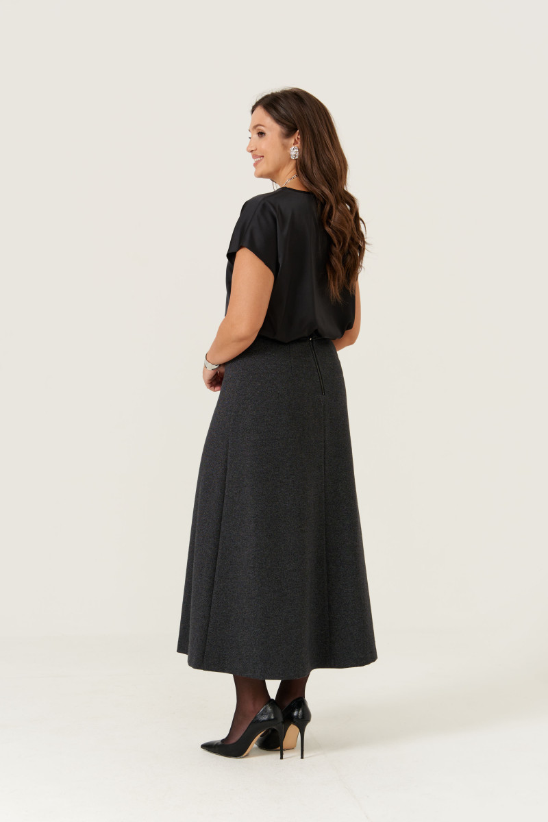 Юбка женская из трикотажа с добавлением вискозы для повседневной и деловой носки. Юбка чуть расширена к низу. Верхний срез юбки обработан притачным поясом на резинке. Заднее полотнище юбки со средним швом и двумя талиевыми вытачками, в среднем шве располагается застежка-молния. Длина юбки миди. Юбка на поливискозной подкладке. В данной юбке вы будете выглядеть очень стильно и уверенно. А главное она удивит вас своей интересной конструкцией.