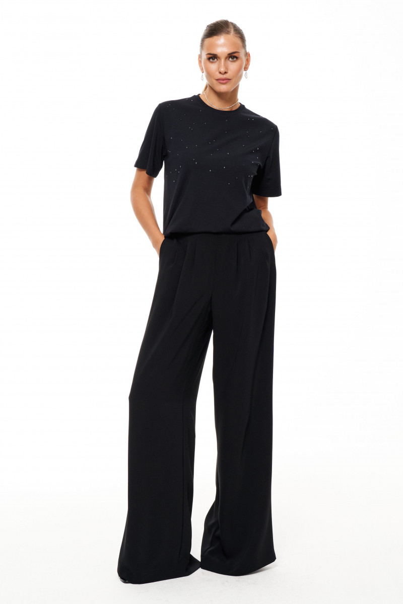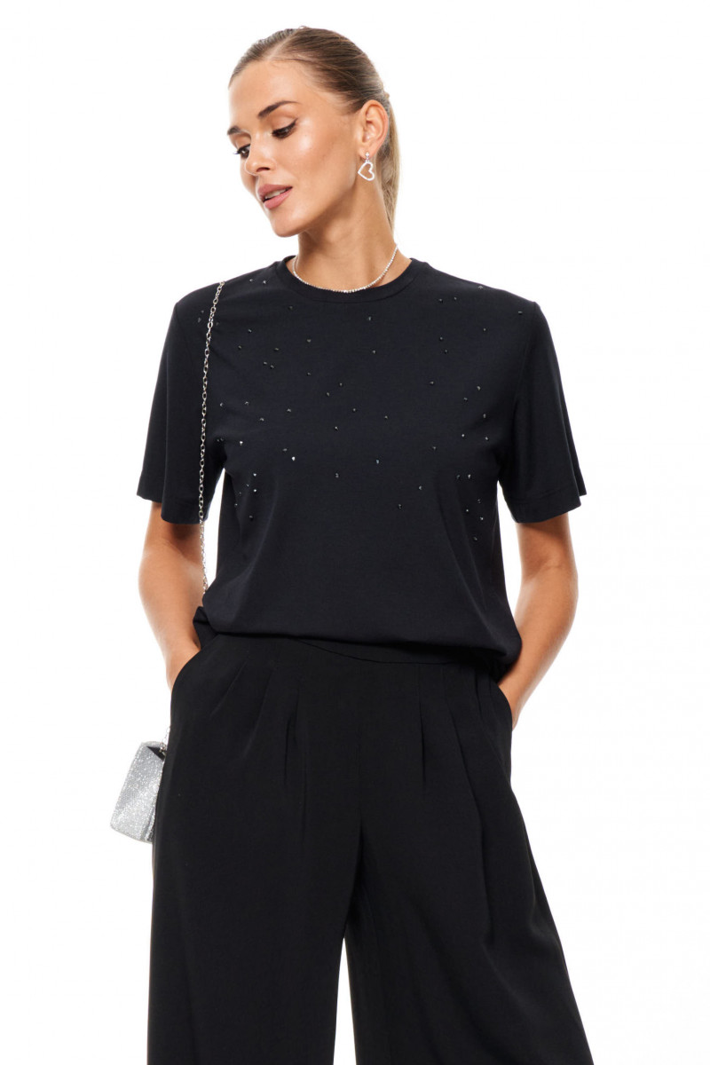 Элегантный и стильный женский джемпер выполнен из мягкого, трикотажного полотна с добавлением вискозы, что обеспечивает комфорт и приятные ощущения при носке. Этот базовый джемпер украшен россыпью сверкающих страз на передней части, что придает ему нарядный и модный вид. Благодаря своей универсальности, он идеально подойдет как для повседневного использования, так и для особых случаев, таких как корпоративы, Новый год или другие торжественные мероприятия.