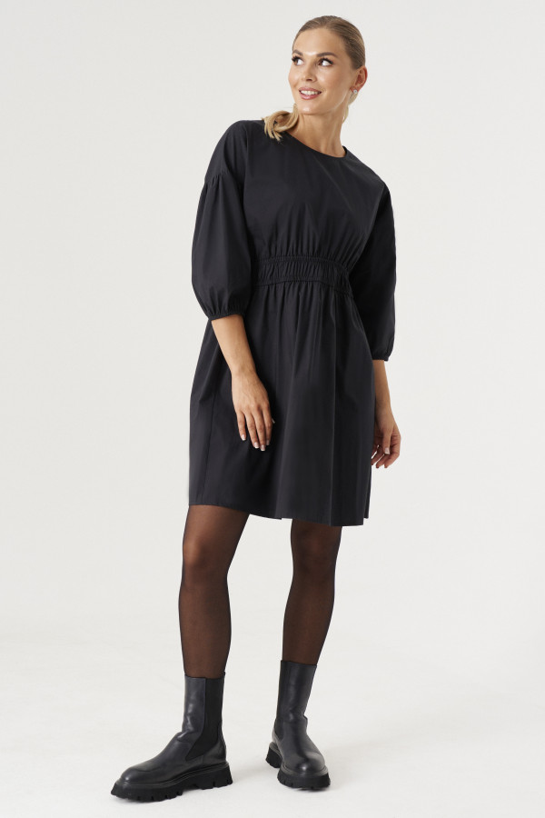 Потайная молния в боковом шве гарантирует удобную посадку без лишних усилий. Дополнением к платью служит съёмная декоративная брошь, которая добавляет ещё один модный акцент, придавая наряду индивидуальность. Это базовое, но в то же время нарядное платье подходит как для повседневной носки в офисе, так и для особых случаев, когда нужно выглядеть деловито, но элегантно.