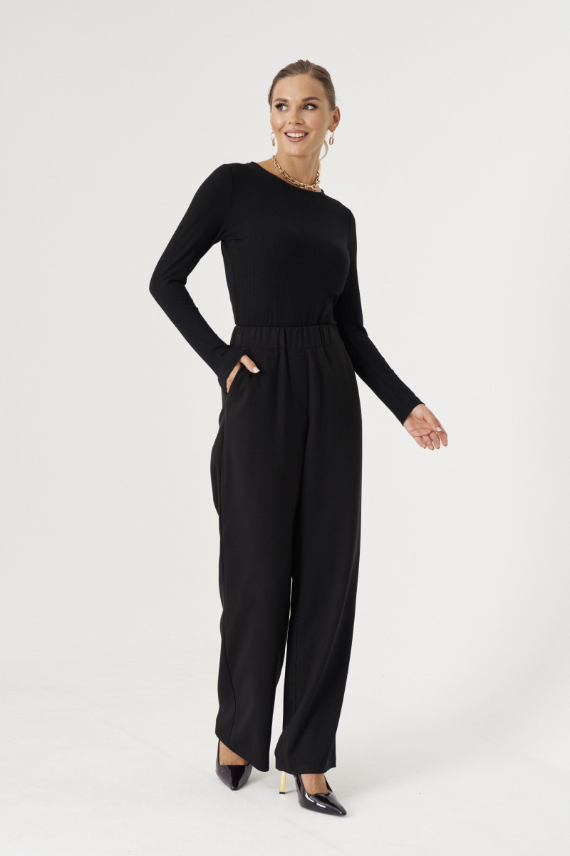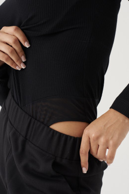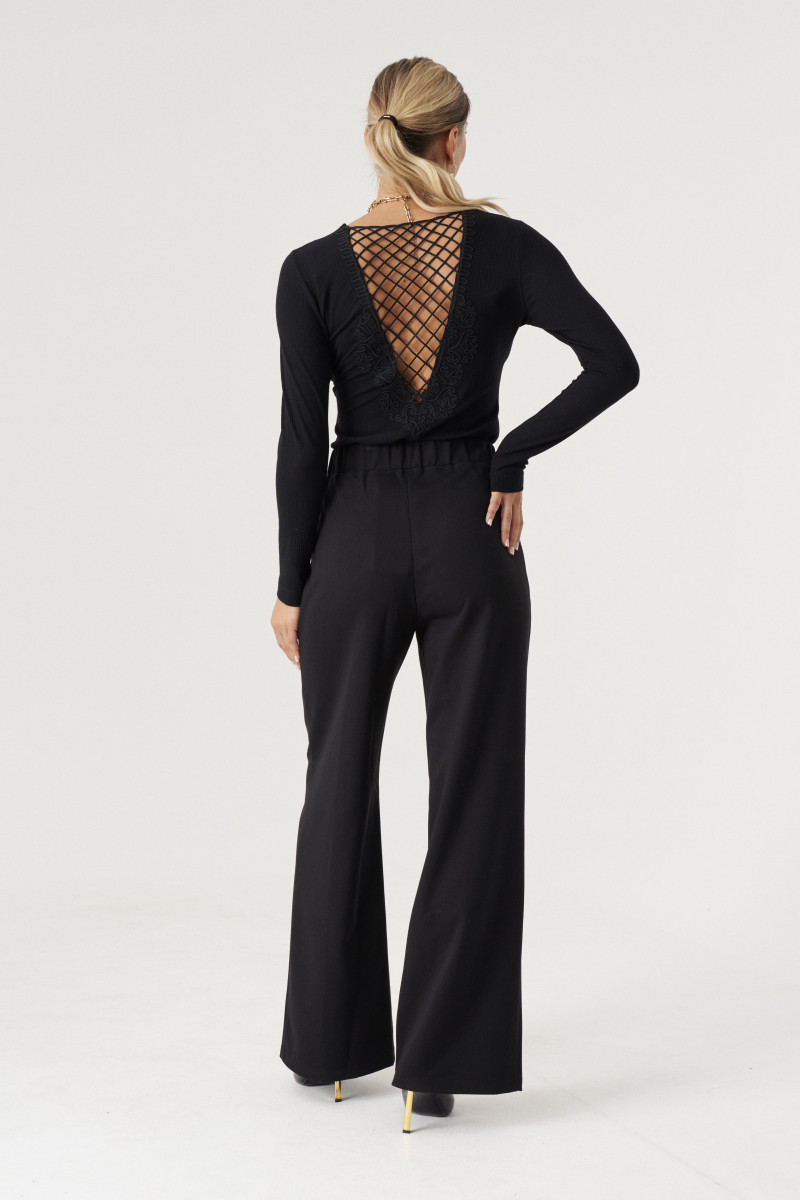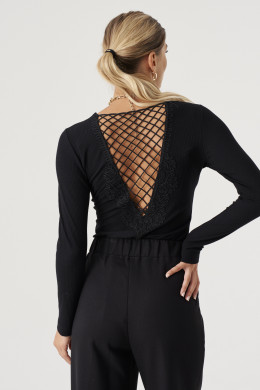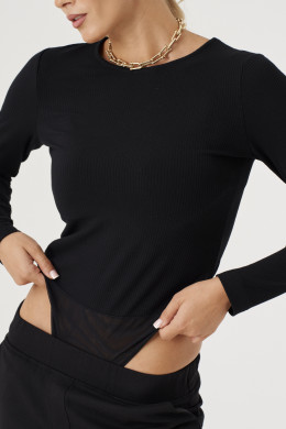 Джемпер (боди) женский из вискозного трикотажного полотна прилегающего силуэта. Рукава втачные длинные. По спинке V-обозная горловина с декоративным узором. Низ изделия выполнен в виде трусиков из сетки, что облегчает одевание, застежка на две кнопки. Отлично будет смотреться с брюками или юбкой. Очень стильное боди, которое отлично подчеркнет ваши достоинства фигуры. В этом изделии вы всегда будете в центре внимания.