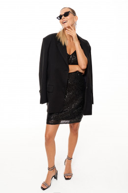 Платье женское из ткани с пайетками для торжественных мероприятий. Перед имеет две нагрудные вытачки. Горловина V-образная. Платье имеет бретели, которые можно регулировать. Низ изделия обработан тесьмой из сетки. Длина изделия до колена. Платье на трикотажной подкладке. Очень элегантное и очаровательное платье в котором вы будете чувствовать себя уверено и привлекательно.
