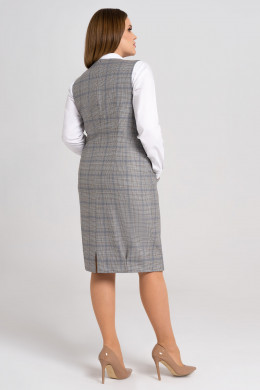 Повседневный сарафан из мягкой костюмной ткани. Прилегающий силуэт сарафана мягко подчёркивает фигуру,не стесняя движений. Вырез горловины V-образный. Под грудью спереди выполнен горизонтальный подрез. По нижней детали сарафана спереди выполнены рельефы,переходящие во внутренние карманы. По низу выполнены защипы,заужающие силуэт снизу. По спинке выполнен средний шов,в котором оформлена потайная молния от горловины и разрез снизу. Сарафан можно носить с водолазкой или с рубашкой. Он помогает создать интеллигентный деловой образ и одновременно максимально удобен.