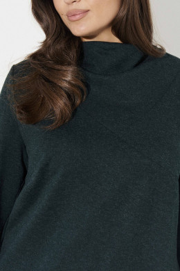 Джемпер прямого силуэта с втачными длинными рукавами с высокими отрезными двойными манжетами по низу. Воротник двойной мягкой формы ,оформлен в резы фигурной вормы,выполненные по переду и спинке