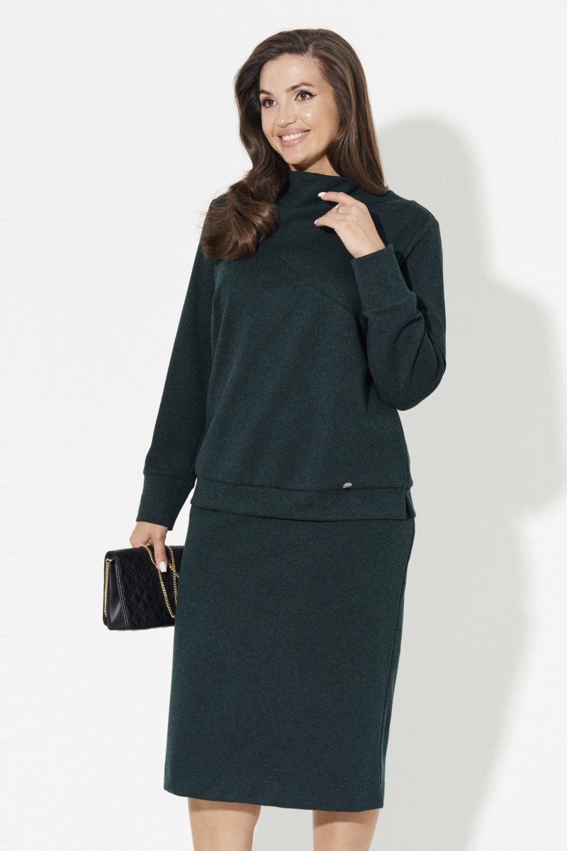Юбка -карандаш длиной до середины голени также выполнена из мягкого и формоустойчивого трикотажного полотна.На поясе с резинкой .От боковых швов спереди оформлены косые входы во внутренние карманы.Мешковины карманов настрочены на переднее полотнище юбки изнутри. Прекрасный стильный костюм подойдёт как для работы,так и на каждый день для энергичной девушки,которая ценит в одежде элегантность,сдеожанность и комфорт.