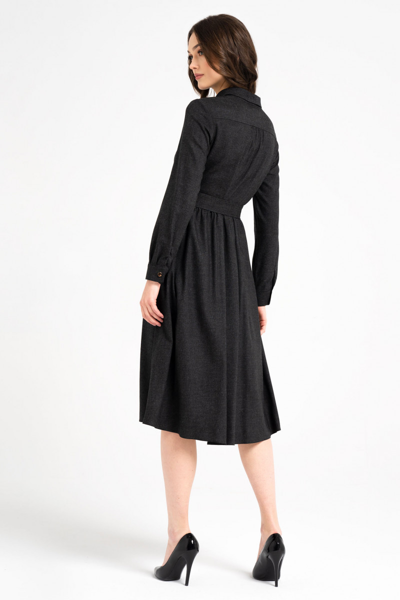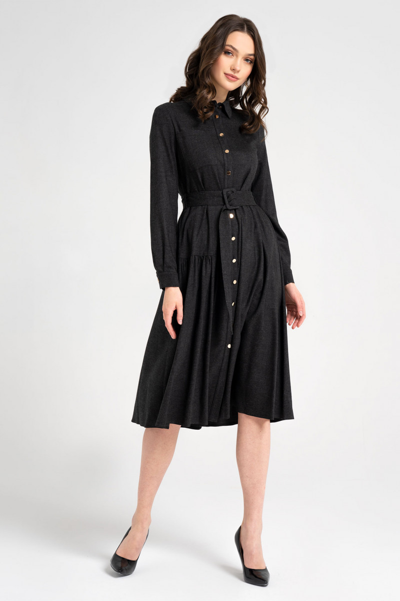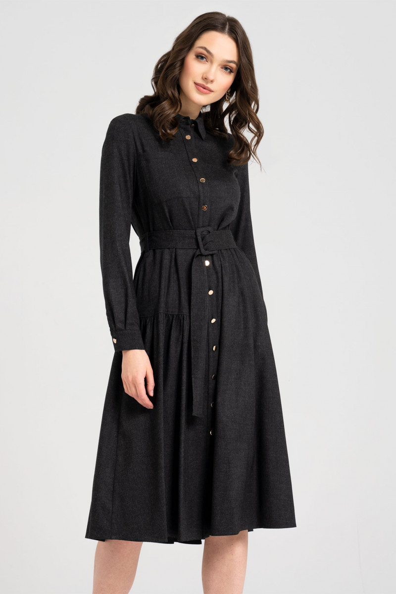 Стильное и очень женственное платье из струящейся и добротной костюмной ткани из натуральных волокон.В нём стиль сафари смешался с романтикой и женственностью.Широкий пояс из основной ткани подчёркивает стройную талию.Струящаяся юбка имеет разные уровни горизонтальных подрезов и выглядит оригинально. Удобная центральная застёжка спереди на петли с пуговицами . Воротник рубашечный отложной на стойке. Рукава втачные ,длинные,снизу на манжете с двумя пуговицами.На уровне груди спереди выполнен один накладной карман. Платье прекрасно подойдёт ,как вариант для работы в офисе,так и на выход. Подарит чувство комфорта и радости.