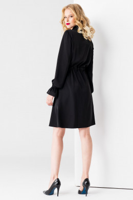 Нарядно- романтичное платье из стуящейся ткани, говорит само за себя. Платье полуприлегающего силуэта, слегка расширенное к низу, горловина фигурной формы, воротник- стойка с рюшей, от стойки декотативная завязка, можно оформить бант, по линии талии кулиса. Спинка с кулисой. Рукава длинные, расширенные к низу. Разнообразить лук помогут яркие аксессуары.