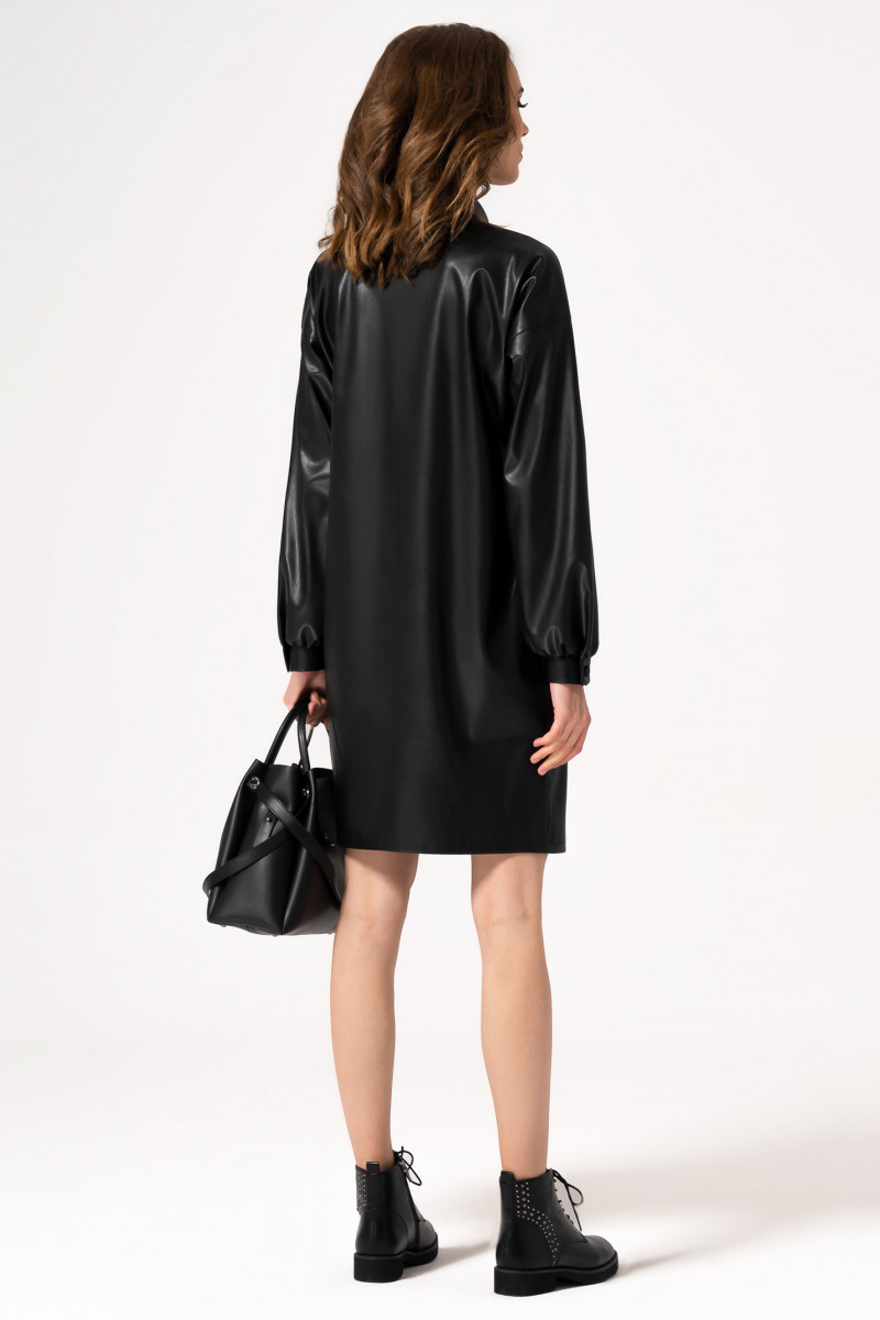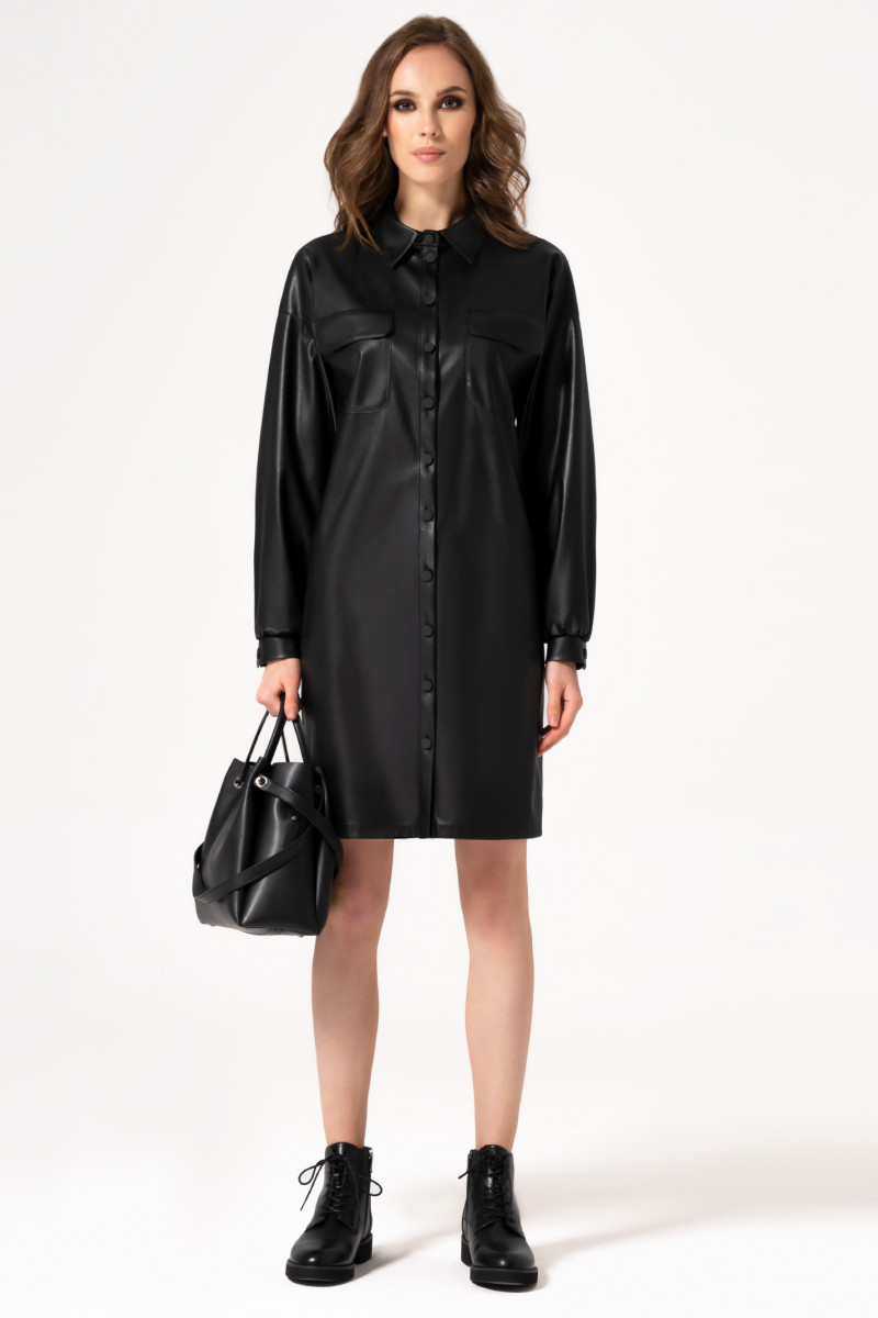 Платье рубашка женское пошито из высококачественной гипоаллергенной мягкой экокожи. Материал отличается воздухопроницаемостью, гигроскопичностью, прочностью, не требует специального ухода. После машинной стирки изделие быстро высыхает, не деформируется.