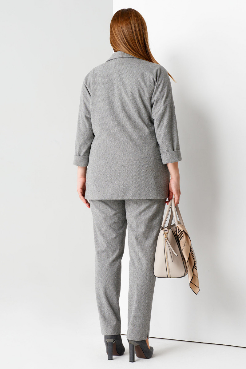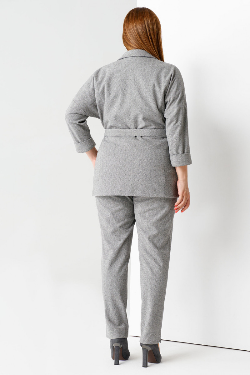| 48 | Жакет: Длина изделия - 71,5см, Длина рукава - 28,5см, Ширина плеча - 31,5см, Ширина по бедрам - 57см, Ширина под проймой - 53см, Ширина рукава - 19см; Брюки: Высота посадки - 25,5см, Длина брюк с поясом - 101см, Длина по внутреннему шву - 77см, Ширина брючин сверху - 66см, Обхват брюк по низу - 38см, Ширина по бедрам - 52см, Ширина по талии - 39,5см; |