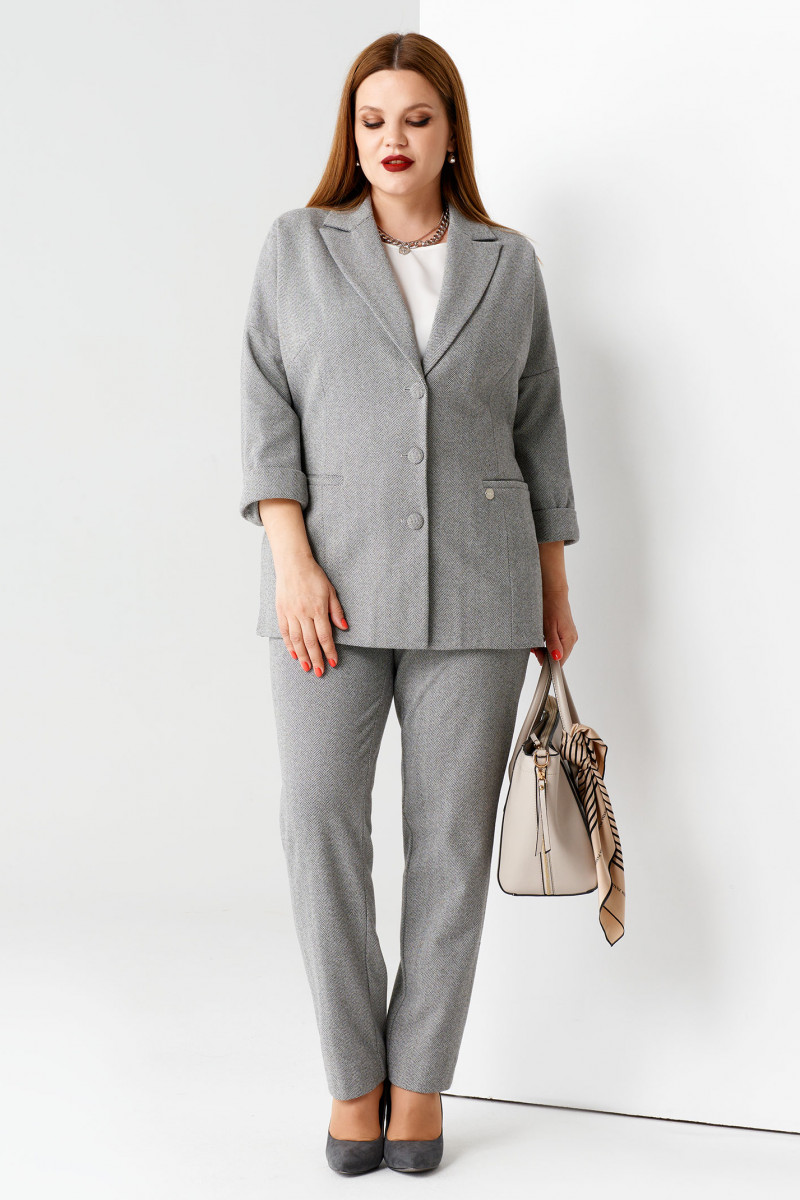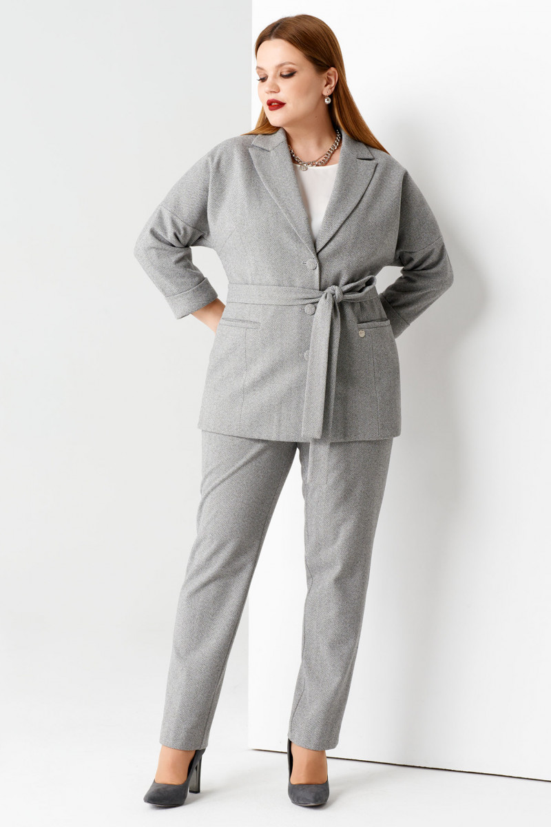 | 56 | Жакет: Длина изделия - 73,5см, Длина рукава - 28см, Ширина плеча - 32,5см, Ширина по бедрам - 65см, Ширина под проймой - 61см, Ширина рукава - 22см; Брюки: Высота посадки - 27,5см, Длина брюк с поясом - 102см, Длина по внутреннему шву - 77см, Ширина брючин сверху - 74см, Обхват брюк по низу - 40,5см, Ширина по бедрам - 60см, Ширина по талии - 49см; |