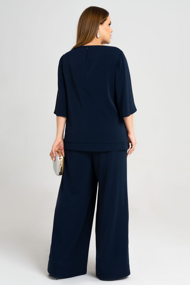 | 56 | Блузка: Длина изделия - 66см, Длина рукава - 39см, Ширина плеча - 7см, Ширина по груди - 61см, Ширина по низу - 66см, Ширина рукава - 24.5см; Брюки: Высота посадки - 29.5см, Длина брюк без пояса - 103.5см, Длина по внутреннему шву - 78.5см, Ширина брючин сверху - 85см, Обхват брюк по низу - 59.5см, Ширина по бедрам - 66см, Ширина по талии - 46см; |