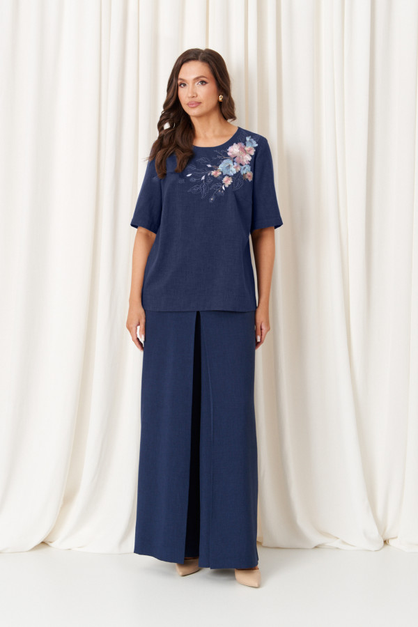 | 54 | Блузка: Длина изделия - 65см, Длина рукава - 39см, Ширина плеча - 7см, Ширина по груди - 59см, Ширина по низу - 64см, Ширина рукава - 23.8см; Брюки: Высота посадки - 29см, Длина брюк без пояса - 103см, Длина по внутреннему шву - 78.5см, Ширина брючин сверху - 83см, Обхват брюк по низу - 57.5см, Ширина по бедрам - 64см, Ширина по талии - 43.5см; |