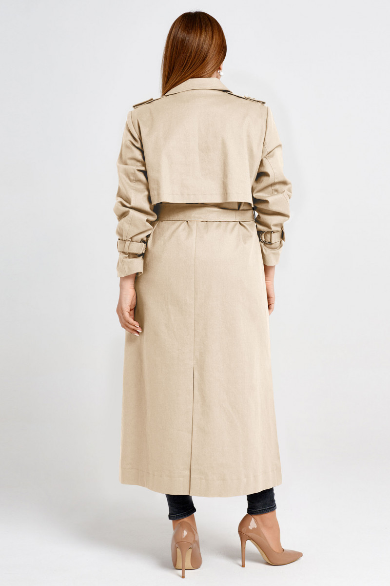 Стильный и удобный весенний плащ на подкладке выполнен из плотной ,но дышащей хлопковой плащёвой ткани .Застёжк двубортная на петли и пуговицы. На талии завязывается пояс из основной ткани.Вырез горловины V-образный. Воротник отложной пиджачного типа.По плечам выполнены паты в виде погон,застёгивающихся на петлю и пуговицу. Рукава втачные, по низу стягиваются на пату,которая фиксируется при помощи пряжки и держится за счёт шлёвок. По спинке выполнена удлинённая отлетная кокетка. В среднем шве спинки выполнена высокая шлица.Подкладка с леопардовым принтом придаёт изделию остроты и изящества. Очень стильный и удобный плащь для энергичной девушки ,которая любит выглядеть безупречно.