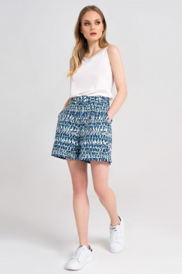 Стильные хлопковые шорты с высокой посадкой. На талии оформлен широкий съёмный пояс из основной ткани,фиксирующийся при помощи шлёвок. Застёжка спереди на молнию с гульфиком и два потайныз крючка.По переду оформлены боковые входы во внутренние карманы и вертикальные складки ,застроченные частично от верха.По низу шорт выполнен отложной манжет. Шорты расширены книзу и имеют модный трапецевидный силуэт. Прекрасный нескучный вариант одежды на каждый день,который будет уместен как для прогулки в выходной день,так и как вариант на работу,если условия труда не требуют строгого дресс кода.