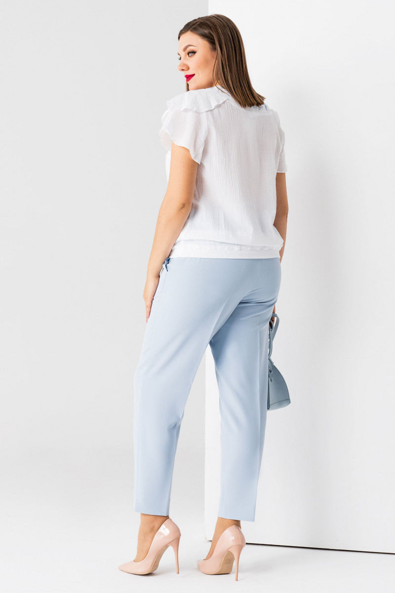 Стильная блузка из хлопка, декорированна дизайнерской вышивкой. Детали переда с V- образным вырезом горловины, с кокеткой фигурной формы и дизайнерской вышивкой, с декоративной планкой на петли пуговицы, по линии низа расположена резинка. Спинка с кокеткой и дизайнерской вышивкой, с резинкой по линии талии. Рукава- воланы, двойные . Акцент сделан на романтизм, что делает образ воздушным и загадочным, создана для девушек, которые умеют совмещать работу и отдых