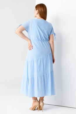 Нарядное платье решит дилемму с выбором образа. В таком наряде можно посетить театр, сходить на выставку, свадьбу, юбилей. Элегантное женское платье выполнено из натурального хлопка. Материал пропускает воздух, дарит комфорт. Вверху хлопковое платье с круглым выкатом дополнено четырьмя пуговицами. Короткий рукав с завязками придает дизайну романтичные ноты. Отрезная юбка с заниженной талией пришита наискосок, визуально скрадывает лишние сантименты на бедрах. Вы можете купить женское платье больших размеров 46-56 по выгодной цене