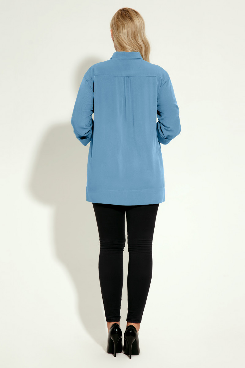 Восхитительная повседневная блузка выполнена из мягкой,чуть эластичной , вискозной ткани. Рукав длиной ниже локтя ,рубашечный с манжетом,подвёрнутым снизу и зафиксированным на пату с петлёй и пуговицей. По переду выполнена отрезная кокетка , декоративные резы и детали в виде клапанов ,придающие блузке споортивность и эффектность . Застёжка спереди на отрезную планку с петлями и пуговицами. Клапаны также фиксируются с помощью декоративных пуговиц. По спинке выполнена отрезная кокетка и сборка,обеспечивающая свободу движений. Снизу по бокам выполнены разрезы. Спинка длиннее переда.Прекрасный вариант блузки на каждый день для эффектной девушки,ценящей в одежде комфорт и стиль .