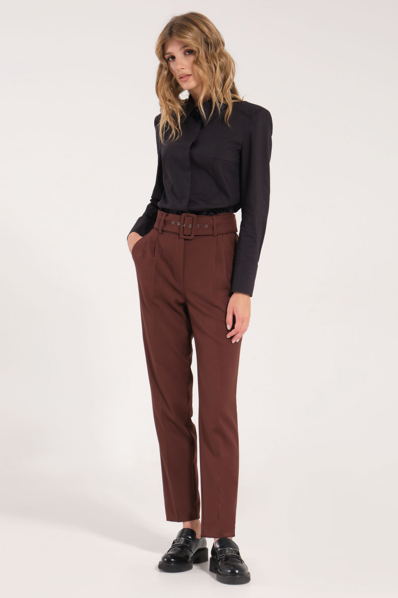 | 42 | Брюки: Высота посадки - 31см, Длина брюк без пояса - 99см, Длина по внутреннему шву - 74,5см, Ширина брючин сверху - 63см, Обхват брюк по низу - 33,5см, Ширина по бедрам - 47,5см, Ширина по талии - 33,5см; |