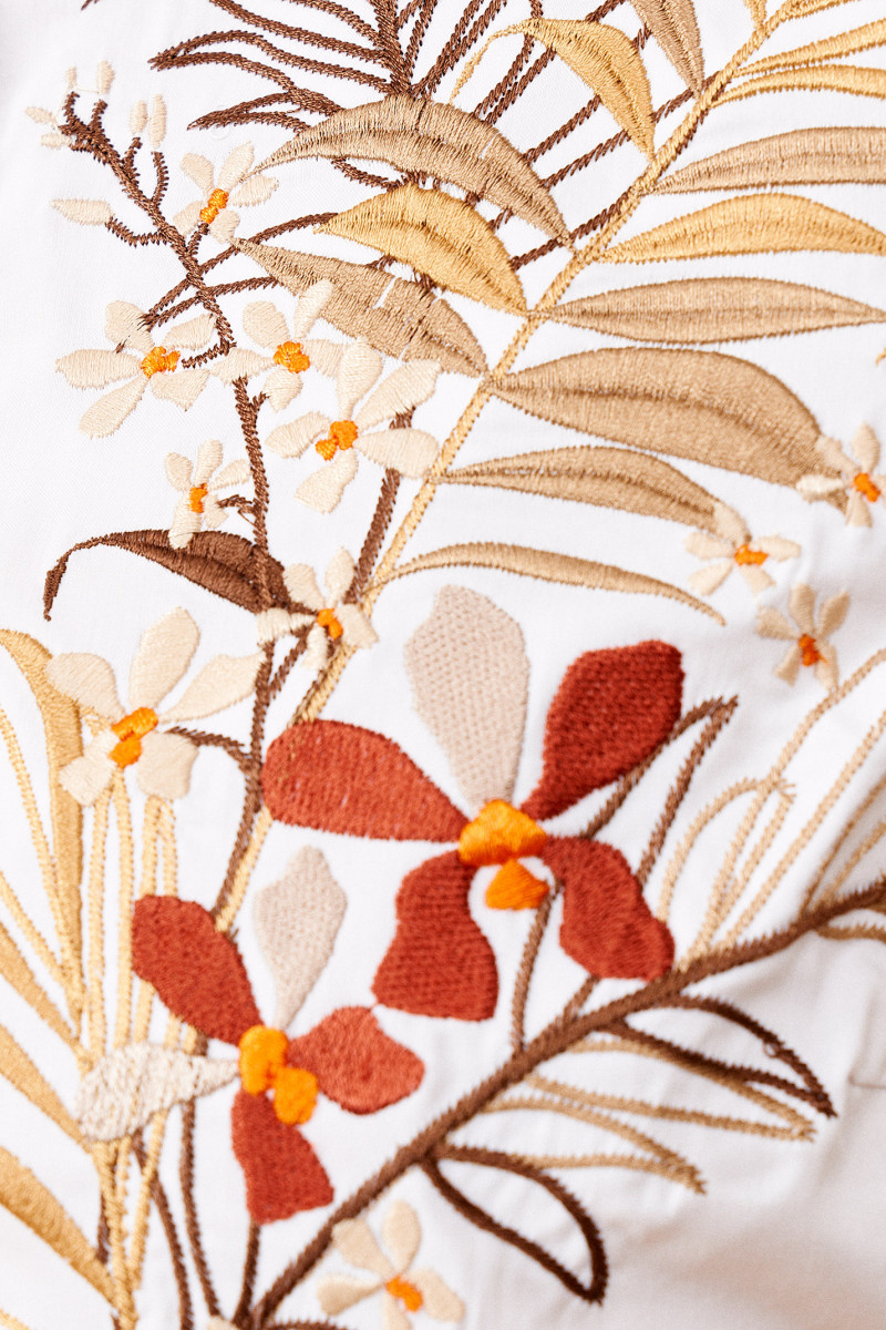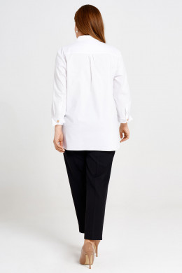 Стильная блузка из хлопковой ткани. В блузке сделан акцент на офисный стиль с нотками роскоши, этого удалось достичь благодаря декору "авторская вышивка". Блузка полуприлегающего силуэта, с застежкой на планку, с нагрудными вытачками по переду, на спинке кокетка, рукава удлиненные на манжете.
