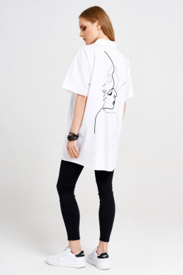 Женская хлопковая блузка свободного силуэта с шикарным графичным декором на спинке. Длина плавно увеличивается от переда к спинке.Вырез горловины V-образный,с запахом.Воротник рубашечный на стойке . Рукав цельнокроеный,короткий.Боковой шов смещён на переднюю часть. Стильная и современная блузка на каждый день для современной и яркой девушки.