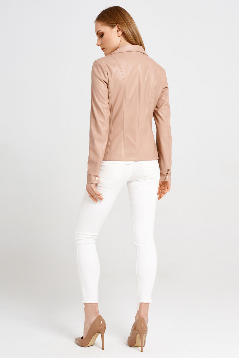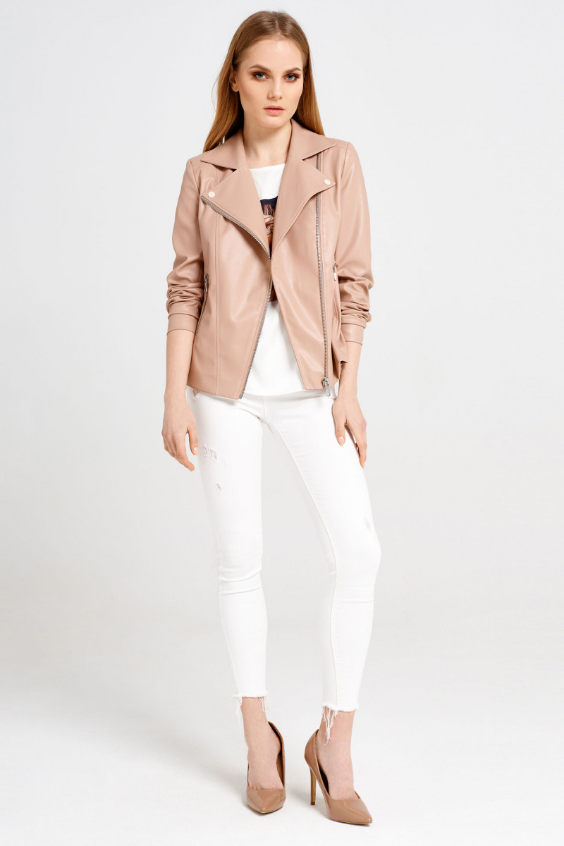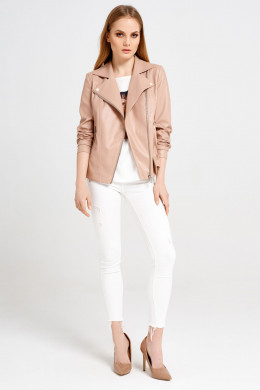 Стильная куртка "косуха". Короткая куртка полуприлегающего силуэта длиной чуть ниже талии с металлической молнией наискосок. По переду и по спинки имеются рельефы, которые обеспечивают отличную посадку по фигуре. Низ куртки и низ рукавов на притачной манжете. По переду боковые карманы на металлической молнии. Куртка дополнена кнопками по лацканам и манжетам. Куртка на поливискозной подкладке. Самый трендовый вариант верхней одежды для весны.