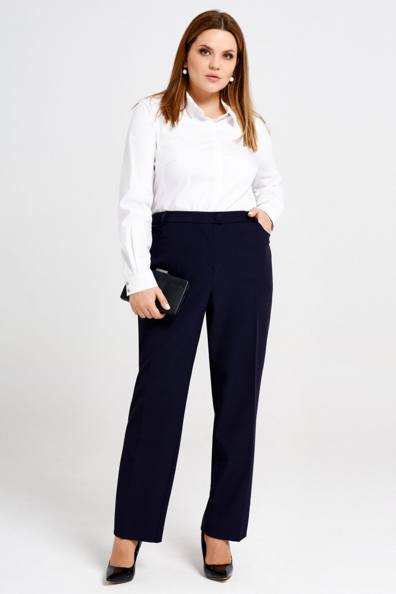 Классические прямые брюки. Брюки на поясе. По поясу по бокам имеется резинка. По переду карманы. На задней части брюк имеется фигурная кокетка.Отличный базовый вариант брюк, которые гармонично сочетаются с различными жакетами, блузками или джемперами.