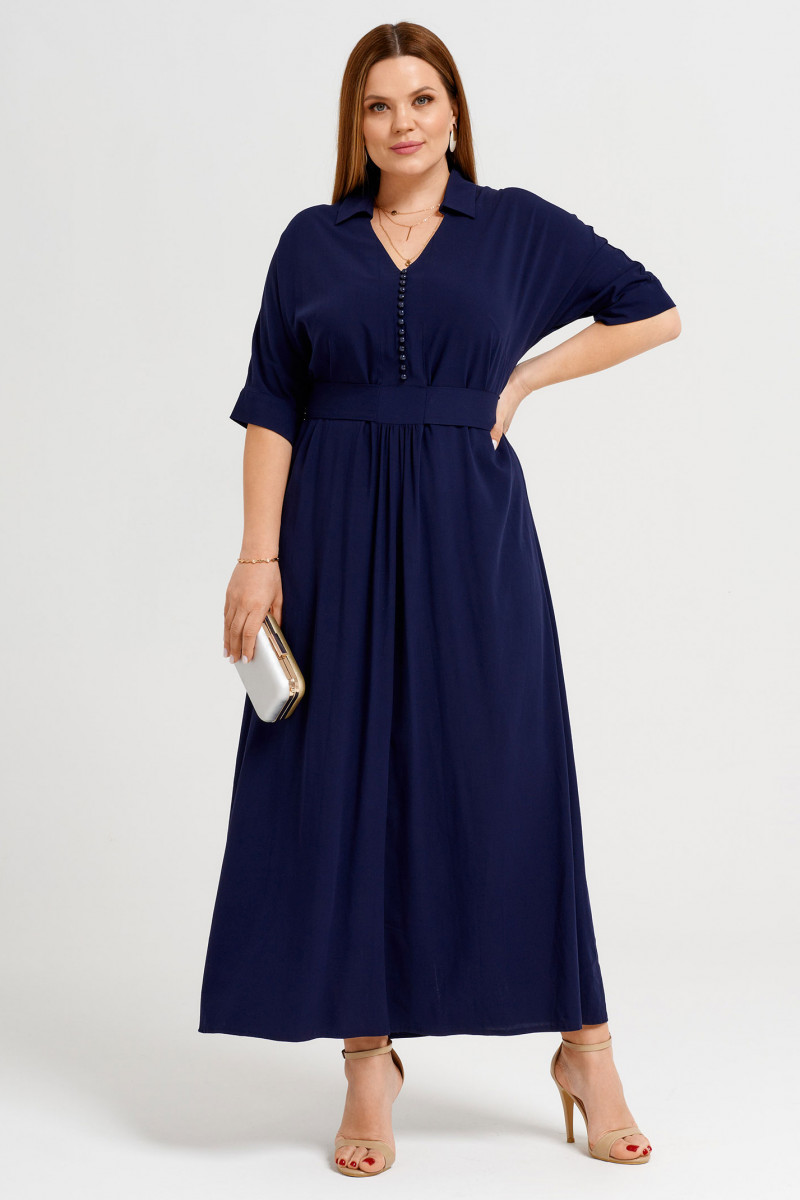 Очень женственное и элегантное платье из мягкого и чуть эластичного вискозного полотна. Силуэт платья X-образный. Вырез горловины V-образный с отложным воротником на стойке. Рукава цельнокроеные с отложной манжетой по низу. Спереди оформлена имитация застёжки на ряд декоративных пуговиц и зафиксирован отлетной пояс из основной ткани,завязывающийся сзади на бант. Спереди по центру от талии вниз оформлена сборка. Платье длинное и очень стройнит. Прекрасный вариант как на каждый день ,так и для торжественного случая для элегантной и яркой девушки.