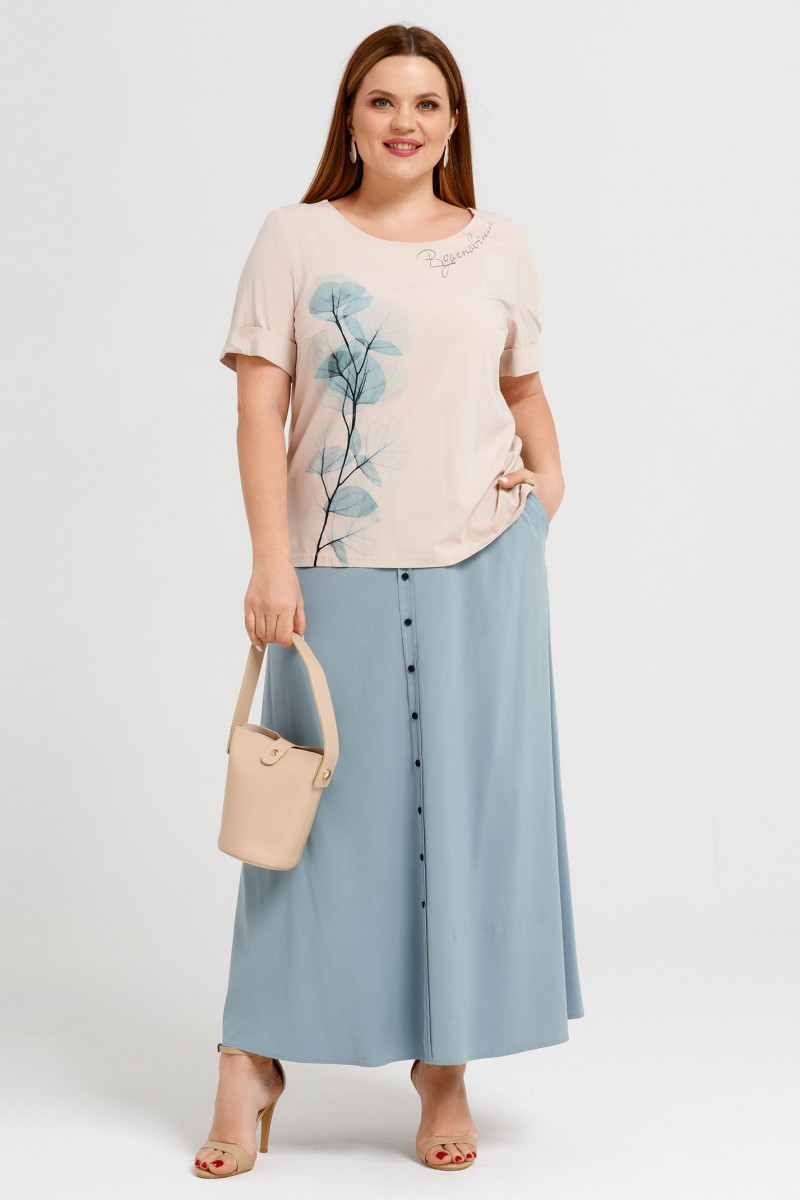 Комплект женский (блузка, юбка) 38210z (Бежево-бирюзовый)