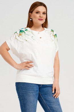 Комфортный трикотажный ждемпер, из хлопка. Джемпер полуприлегающего силуэта, с круглым вырезом горловины, по переду планка с застежкой на петли пуговицы, деталь переда декорированна дизайнерской печатью, предавая джемперу изящество, линия плеча спущенная, по линии низа широкая планка. Спинка лаконичная . Джемпер создан для уверенной в себе девушке, которая знает как выглядеть неотразимо и при этом чувствовать себя комфортно.