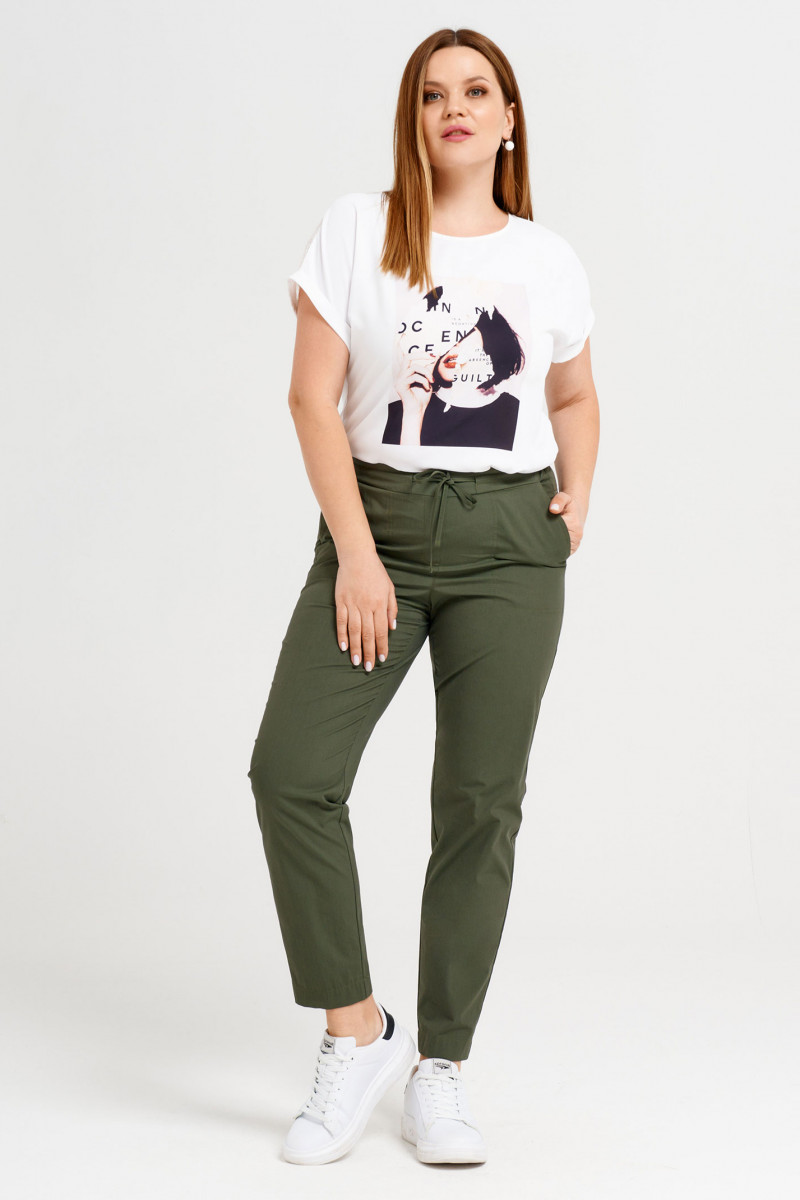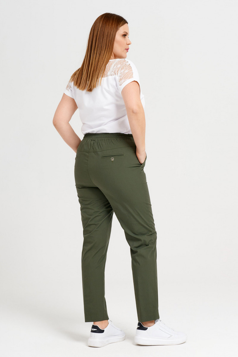 Стильные молодежные брюки из хлопковой ткани с поясом на резинке с декоративным шнурком. Брюки чуть заужены к низу. По низу можно заложить манжеты, для самых модниц. По переду брюк карманы. На задней части брюк фигурная кокетка и декоративные карманы в рамку с петлей и пуговицей. Отличный вариант для активного летнего отдыха.
