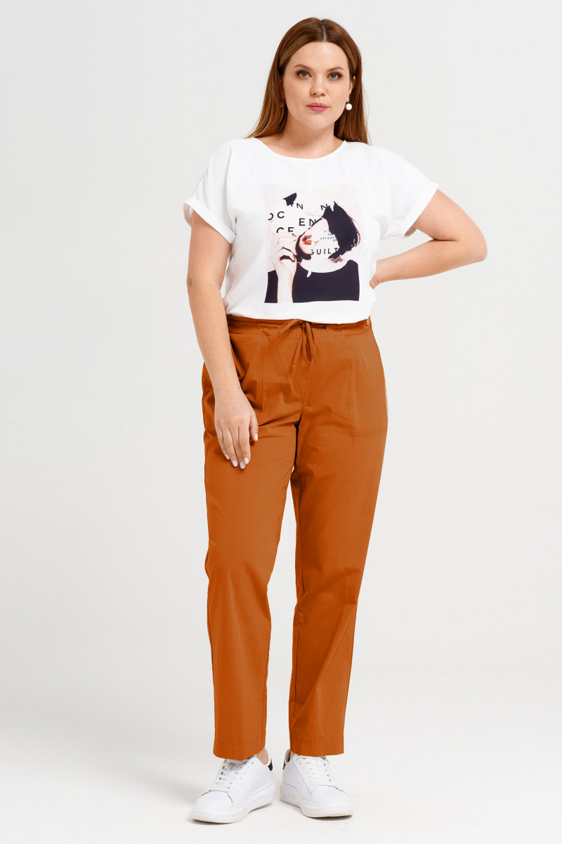 Стильные молодежные брюки из хлопковой ткани с поясом на резинке с декоративным шнурком. Брюки чуть заужены к низу. По низу можно заложить манжеты, для самых модниц. По переду брюк карманы. На задней части брюк фигурная кокетка и декоративные карманы в рамку с петлей и пуговицей. Отличный вариант для активного летнего отдыха.