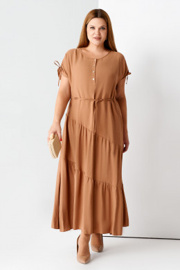 Стильное платье свободного силуэта, к низу расширенное, из вискозной ткани, с круглым вырезом горловины и планкой от нее на петли пуговицы, со спущеной линией плеча оформеной кулисой, платье с интересной асимметрией, воланами со сборкой . Шикарное, легкое платье на жаркую погоду, для прогулок и на работу. В комплект входит тонкий пояс из основной ткани, при желании можно подчеркнуть фигуру.