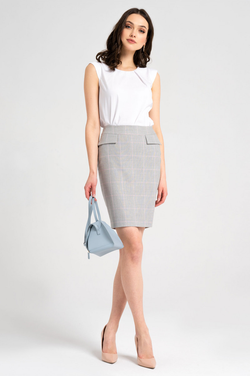 Лаконичная, классическая юбка из поливискозной ткани в клетку. Юбка с талиевыми вытачками, с притачным поясом, декоративными клапанами от него, застежка на потайную тесьму - молнию по среднему шву заднего полотнища. Аккуратные линии кроя, простые решения фасона в минималистическом стиле - и вы выглядите лаконично и стильно.
