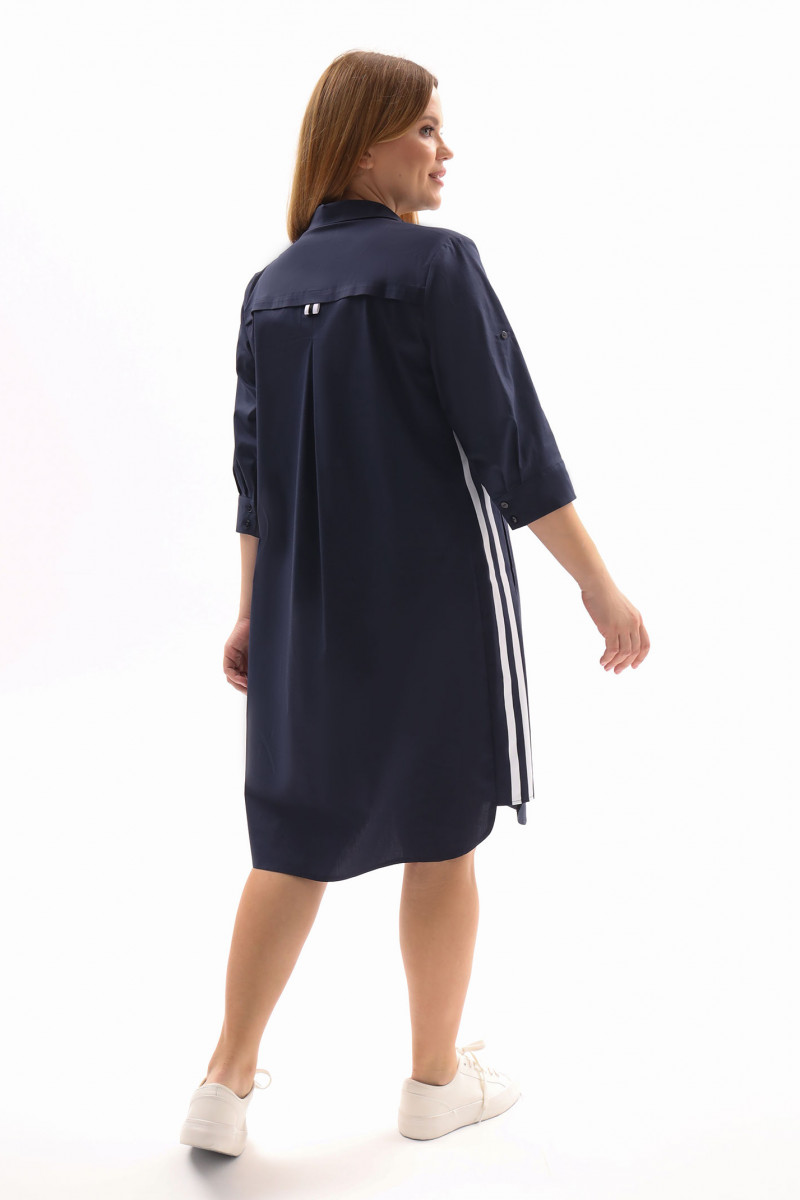 Летнее платье рубашка с рукавами до локтя – комфортный вариант для повседневной носки. Надевайте его дома, на прогулку, встречу с друзьями. Спортивное платье прямого кроя с лампасами по бокам, нагрудным и боковыми карманами скрывает недостатки фигуры. Длина модели – до колена, а линия низа – округлая. Платье на пуговицах пошито из легкой трикотажной ткани. Изделие стирается в машинке, не деформируется, не теряет цвет. Вы можете купить платье женское большого размера, предварительно выбрав нужный из таблицы.
