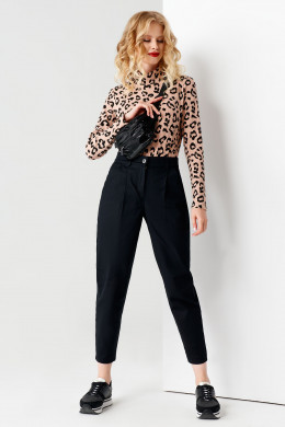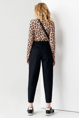Очень модные брюки с высокой посадкой выполнены из плотной хлопковой ткани. По талии выполнен отрезной пояс со шлёвками для ремня. Застёжка спереди на молнию с гульфиком и петлю-пуговицу на поясе. От верхнего среза к боковым швам выполнены входы во внутренние карманы и две односторонние складки. По спинке выполнена отрезная кокетка и два накладных кармана. Брюки заужены книзу и укорочены. Стильные и удобные брюки на каждый день для яркой девушки.
