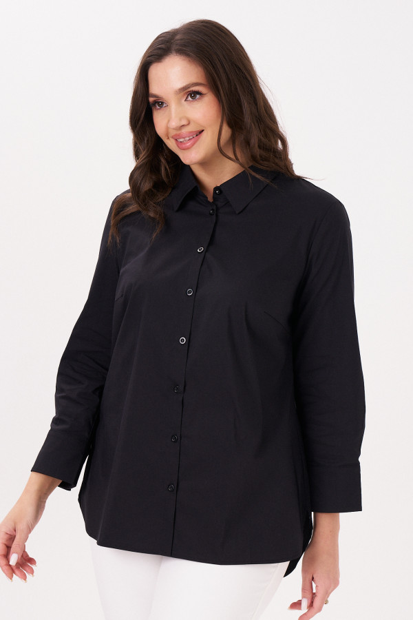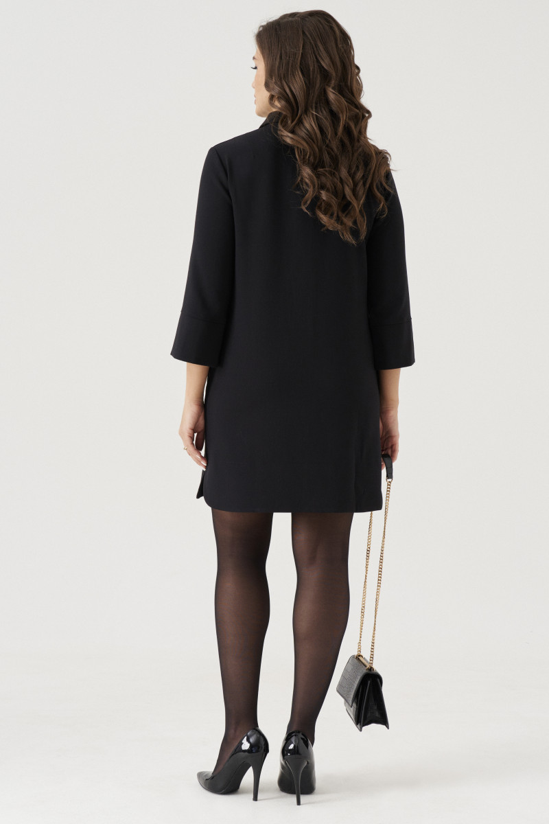 Черное платье женское без декора чудесно выглядит в монохромных аутфитах. Оно также интересно смотрится с дополнением в виде ярких или контрастных по цвету аксессуаров. Платье рубашка женское прямого покроя делает фигуру стройнее и утонченнее. Модель с отложным воротником рубашечного типа застегивается на ряд пуговиц, расположенных по вертикальной планке.