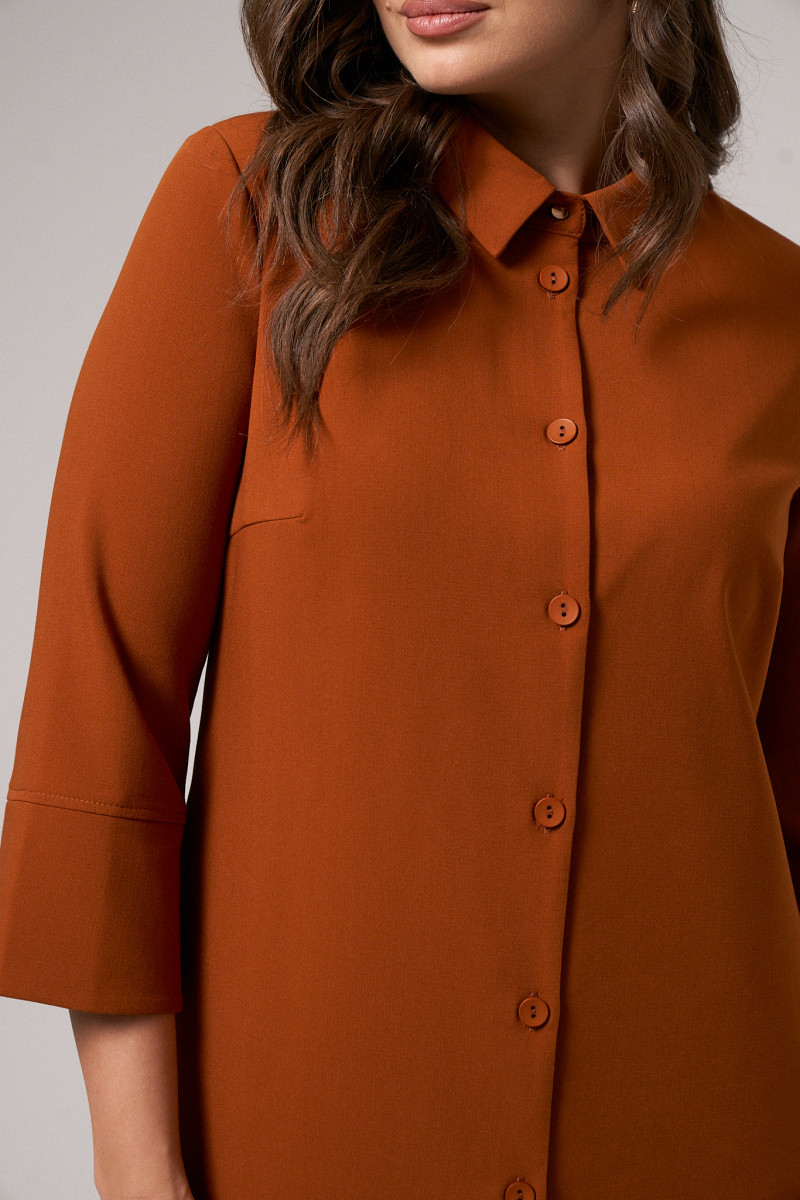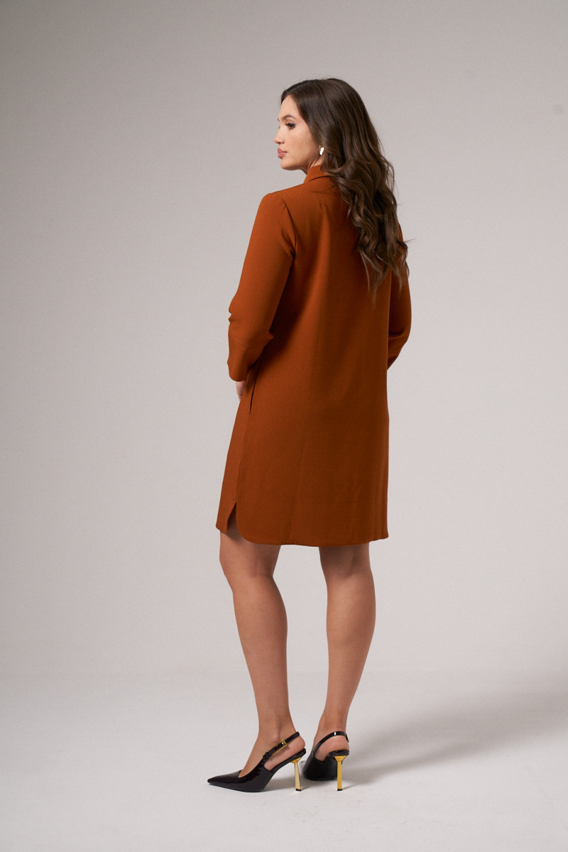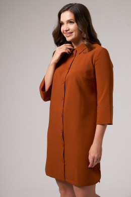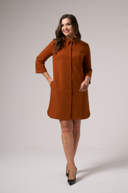 Платье женское осеннее создано с втачными, чуть расширенными к низу, рукавами длиной 7/8 и прорезными карманами в боковых швах. Низ изделия - с округлыми разрезами.