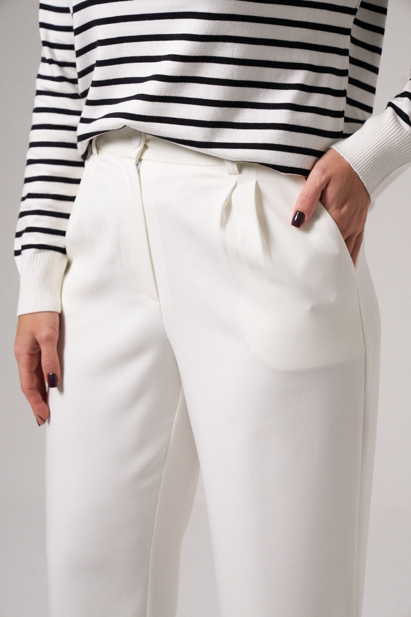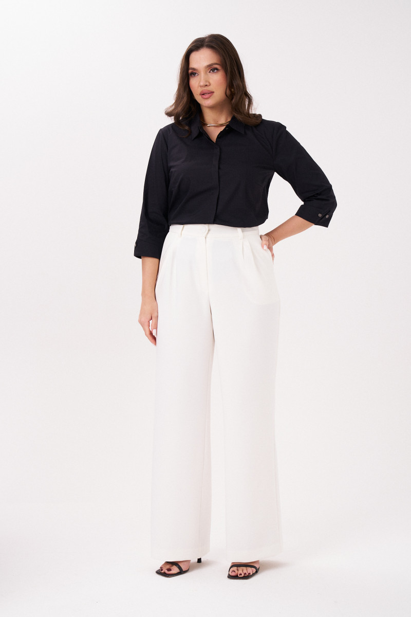 | 46 | Брюки: Высота посадки - 31.5см, Длина брюк без пояса - 109.5см, Длина по внутреннему шву - 84см, Ширина брючин сверху - 69см, Обхват брюк по низу - 57см, Ширина по бедрам - 51см, Ширина по талии - 36.5см; |