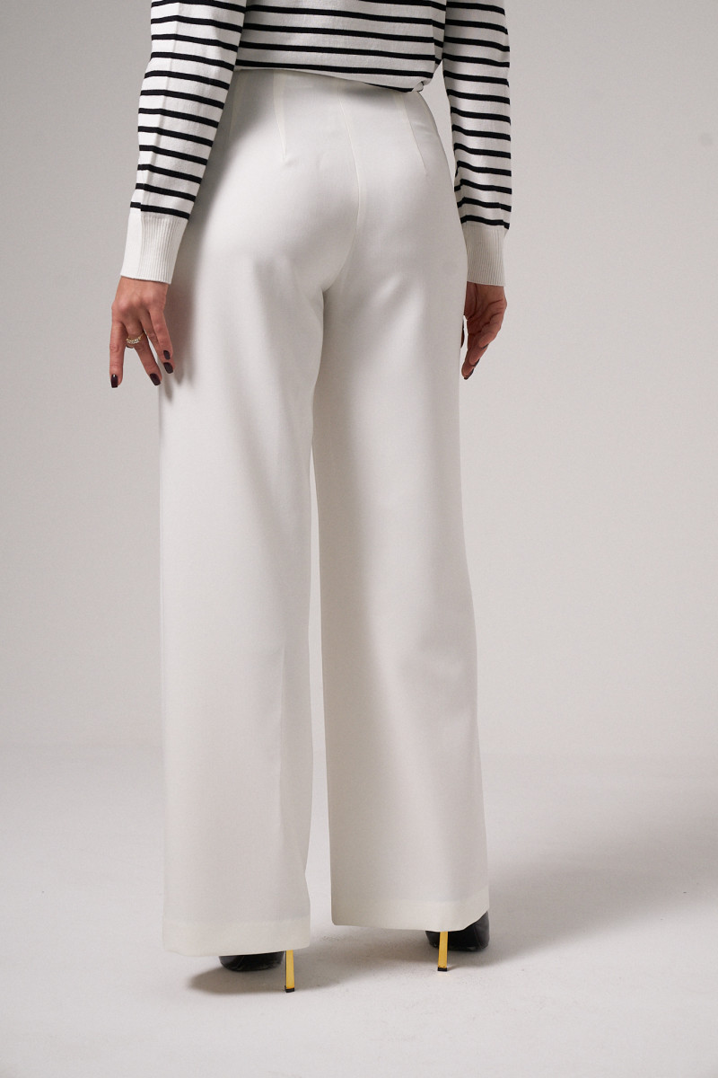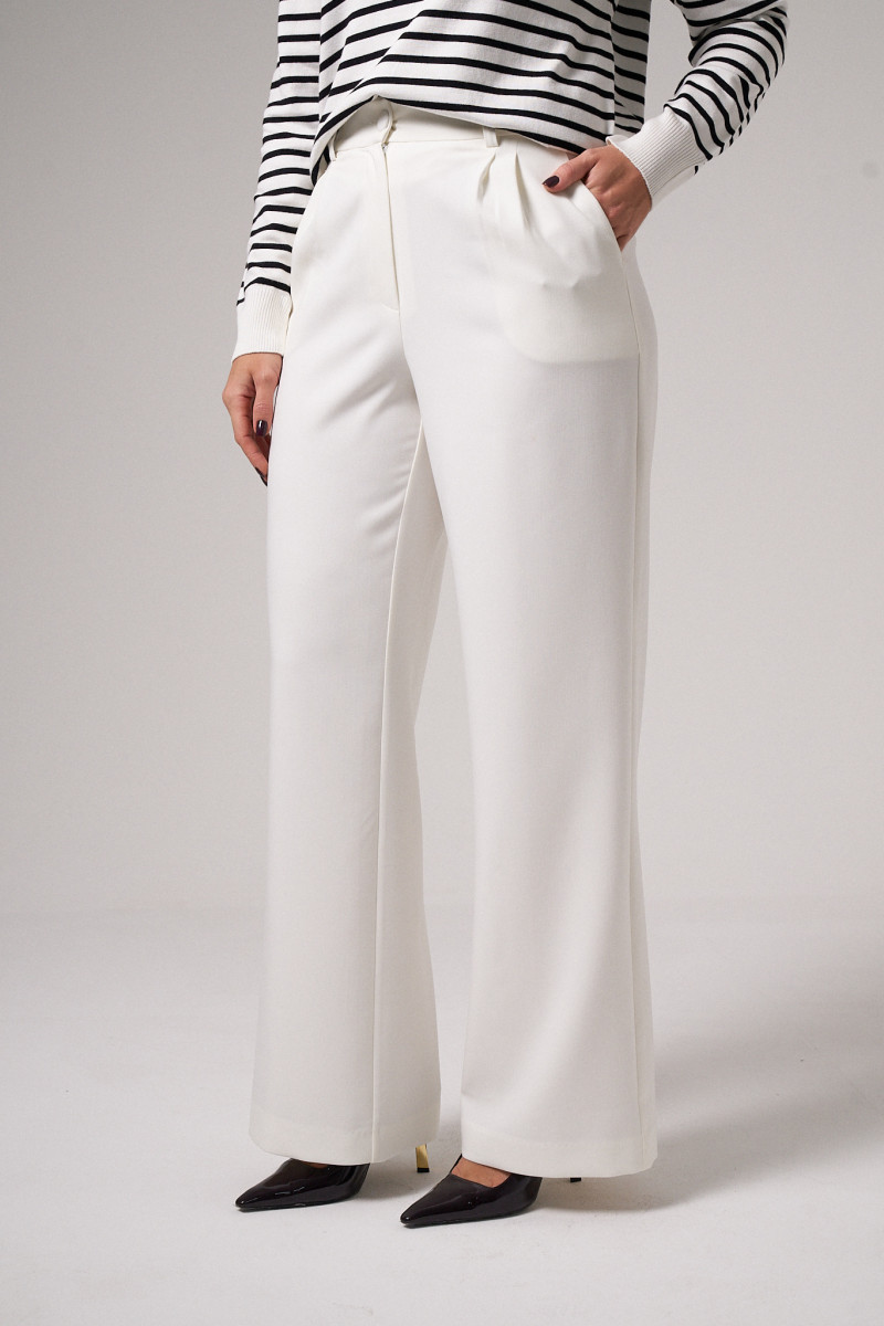 | 44 | Брюки: Высота посадки - 31см, Длина брюк без пояса - 109.5см, Длина по внутреннему шву - 84см, Ширина брючин сверху - 67см, Обхват брюк по низу - 55см, Ширина по бедрам - 49см, Ширина по талии - 34.5см; |